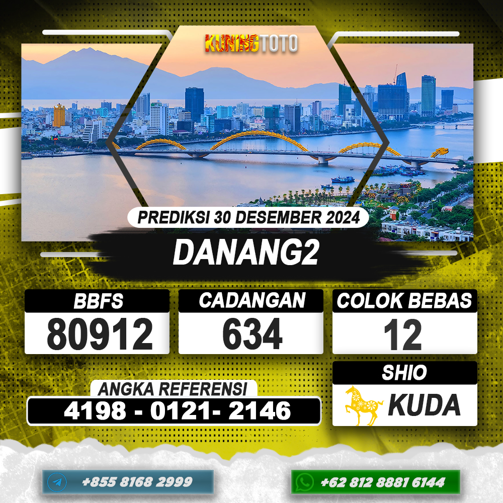 PREDIKSI TOGEL DANANG2 30 DEC 2024 – Selamat Datang di Situs Prediksi Togel Online Akurat dan Resmi KUNINGTOTO. Permainan Togel atau Toto Gelap ini telah lama menarik perhatian dan banyak dimainkan oleh para bettor. Sejak dulu permainan togel dimainkan dengan memasang taruhan angka dengan bandar darat yang tersedia di daerah masing – masing. Namun sekarang ini dengan perkembangan teknologi yang semakin maju, para bettor bisa menikmati permainan togel secara online. Anda bisa menemukan banyaknya Situs Bandar Togel Online yang menyediakan layanan pemaangan angka togel secara praktis. Dimana masing – masing situs bandar togel online resmi dan terpercaya tentu menyediakan layanan dan keuntungan yang berbeda – beda untuk Anda.