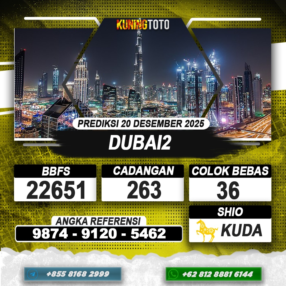 PREDIKSI TOGEL DUBAI2 20 DESEMBER 2025 – Selamat Datang di Situs Prediksi Togel Online Akurat dan Resmi KUNINGTOTO. Permainan Togel atau Toto Gelap ini telah lama menarik perhatian dan banyak dimainkan oleh para bettor. Sejak dulu permainan togel dimainkan dengan memasang taruhan angka dengan bandar darat yang tersedia di daerah masing – masing. Namun sekarang ini dengan perkembangan teknologi yang semakin maju, para bettor bisa menikmati permainan togel secara online. Anda bisa menemukan banyak6ya Situs Bandar Togel Online yang menyediakan layanan pemaangan angka togel secara praktis. Dimana masing – masing situs bandar togel online resmi dan terpercaya tentu menyediakan layanan dan keuntungan yang berbeda – beda untuk Anda.