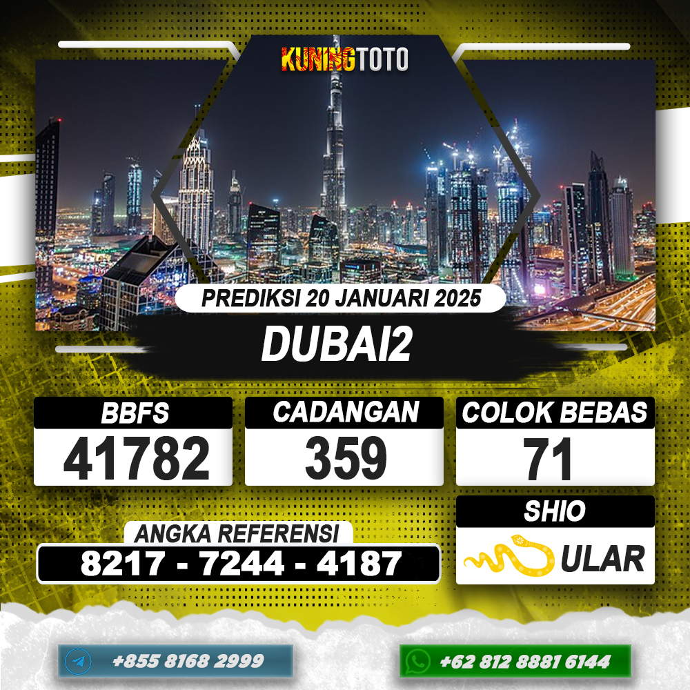 PREDIKSI TOGEL DUBAI2 20 JAN 2025 – Selamat Datang di Situs Prediksi Togel Online Akurat dan Resmi KUNINGTOTO. Permainan Togel atau Toto Gelap ini telah lama menarik perhatian dan banyak dimainkan oleh para bettor. Sejak dulu permainan togel dimainkan dengan memasang taruhan angka dengan bandar darat yang tersedia di daerah masing – masing. Namun sekarang ini dengan perkembangan teknologi yang semakin maju, para bettor bisa menikmati permainan togel secara online. Anda bisa menemukan banyak6ya Situs Bandar Togel Online yang menyediakan layanan pemaangan angka togel secara praktis. Dimana masing – masing situs bandar togel online resmi dan terpercaya tentu menyediakan layanan dan keuntungan yang berbeda – beda untuk Anda.
