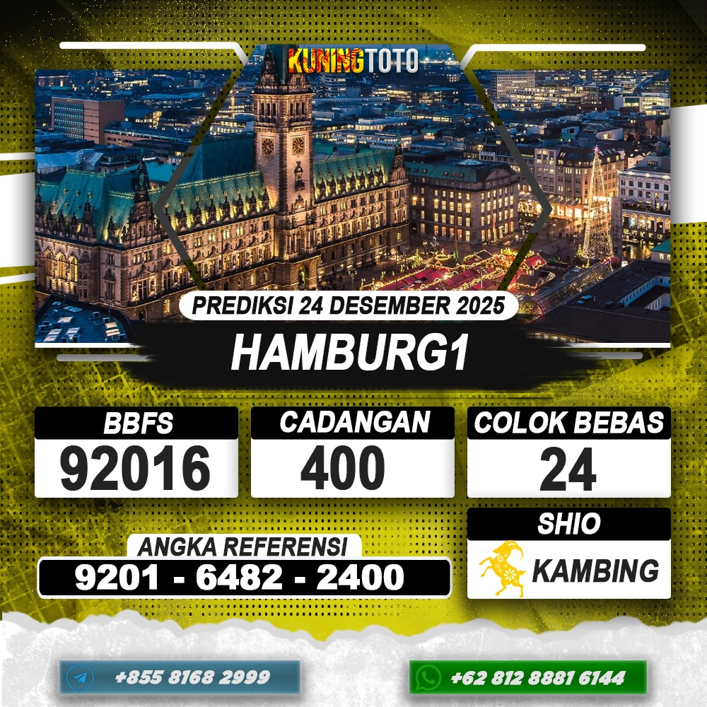 PREDIKSI TOGEL HAMBURG1 24 DESEMBER 2025 – Selamat Datang di Situs Prediksi Togel Online Akurat dan Resmi KUNINGTOTO. Permainan Togel atau Toto Gelap ini telah lama menarik perhatian dan banyak dimainkan oleh para bettor. Sejak dulu permainan togel dimainkan dengan memasang taruhan angka dengan bandar darat yang tersedia di daerah masing – masing. Namun sekarang ini dengan perkembangan teknologi yang semakin maju, para bettor bisa menikmati permainan togel secara online. Anda bisa menemukan banyak6ya Situs Bandar Togel Online yang menyediakan layanan pemaangan angka togel secara praktis. Dimana masing – masing situs bandar togel online resmi dan terpercaya tentu menyediakan layanan dan keuntungan yang berbeda – beda untuk Anda.