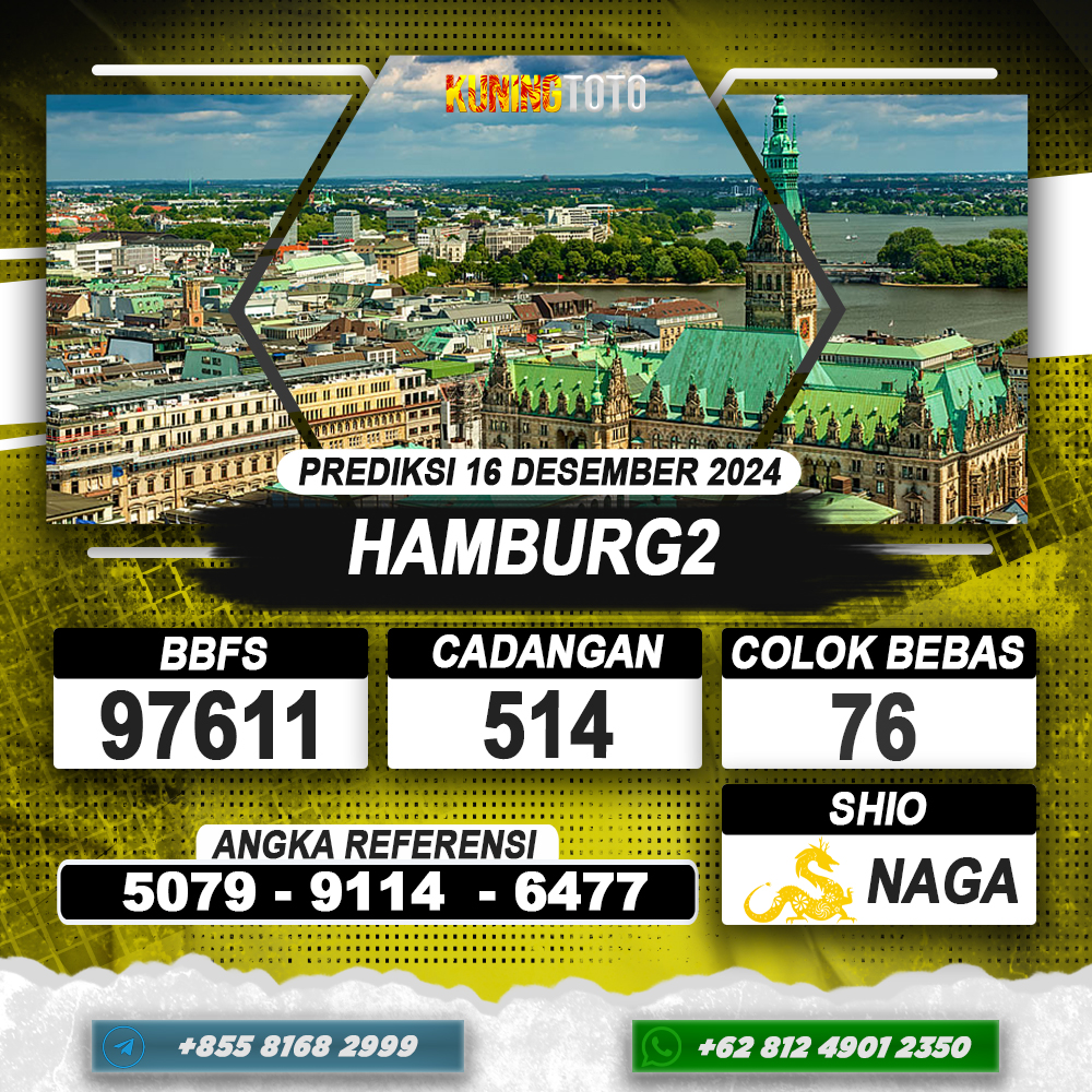 PREDIKSI TOGEL HAMBURG2 16 DEC 2024 – Selamat Datang di Situs Prediksi Togel Online Akurat dan Resmi KUNINGTOTO. Permainan Togel atau Toto Gelap ini telah lama menarik perhatian dan banyak dimainkan oleh para bettor. Sejak dulu permainan togel dimainkan dengan memasang taruhan angka dengan bandar darat yang tersedia di daerah masing – masing. Namun sekarang ini dengan perkembangan teknologi yang semakin maju, para bettor bisa menikmati permainan togel secara online. Anda bisa menemukan banyaknya Situs Bandar Togel Online yang menyediakan layanan pemasangan angka togel secara praktis. Dimana masing – masing situs bandar togel online resmi dan terpercaya tentu menyediakan layanan dan keuntungan yang berbeda – beda untuk Anda.