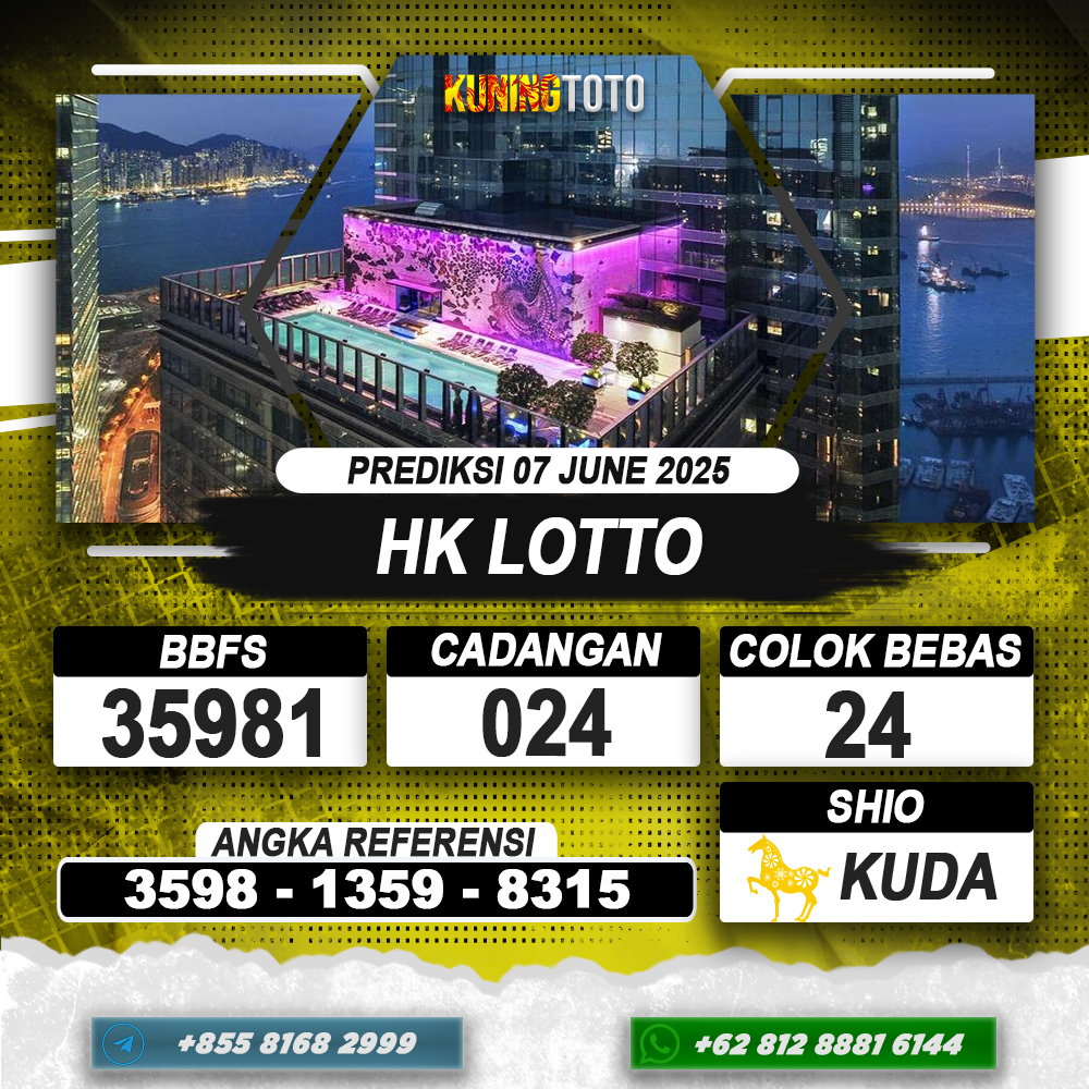 PREDIKSI TOGEL HONGKONG LOTTO 07 MEI 2025 – Selamat Datang di Situs Prediksi Togel Online Akurat dan Resmi KUNINGTOTO. Permainan Togel atau Toto Gelap ini telah lama menarik perhatian dan banyak dimainkan oleh para bettor. Sejak dulu permainan togel dimainkan dengan memasang taruhan angka dengan bandar darat yang tersedia di daerah masing – masing. Namun sekarang ini dengan perkembangan teknologi yang semakin maju, para bettor bisa menikmati permainan togel secara online. Anda bisa menemukan banyak6ya Situs Bandar Togel Online yang menyediakan layanan pemaangan angka togel secara praktis. Dimana masing – masing situs bandar togel online resmi dan terpercaya tentu menyediakan layanan dan keuntungan yang berbeda – beda untuk Anda.