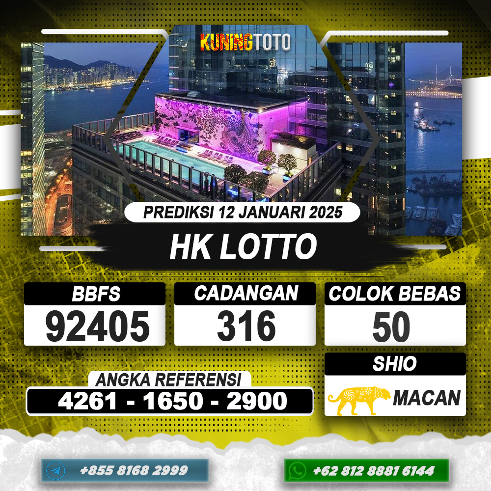 PREDIKSI TOGEL HONGKONG LOTTO 12 JAN 2025 – Selamat Datang di Situs Prediksi Togel Online Akurat dan Resmi KUNINGTOTO. Permainan Togel atau Toto Gelap ini telah lama menarik perhatian dan banyak dimainkan oleh para bettor. Sejak dulu permainan togel dimainkan dengan memasang taruhan angka dengan bandar darat yang tersedia di daerah masing – masing. Namun sekarang ini dengan perkembangan teknologi yang semakin maju, para bettor bisa menikmati permainan togel secara online. Anda bisa menemukan banyak6ya Situs Bandar Togel Online yang menyediakan layanan pemaangan angka togel secara praktis. Dimana masing – masing situs bandar togel online resmi dan terpercaya tentu menyediakan layanan dan keuntungan yang berbeda – beda untuk Anda.