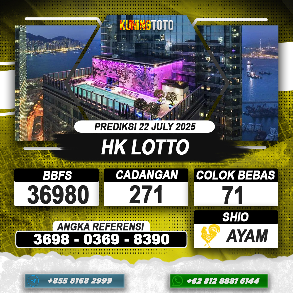 PREDIKSI TOGEL HONGKONG LOTTO 22 JULI 2025 – Selamat Datang di Situs Prediksi Togel Online Akurat dan Resmi KUNINGTOTO. Permainan Togel atau Toto Gelap ini telah lama menarik perhatian dan banyak dimainkan oleh para bettor. Sejak dulu permainan togel dimainkan dengan memasang taruhan angka dengan bandar darat yang tersedia di daerah masing – masing. Namun sekarang ini dengan perkembangan teknologi yang semakin maju, para bettor bisa menikmati permainan togel secara online. Anda bisa menemukan banyak6ya Situs Bandar Togel Online yang menyediakan layanan pemaangan angka togel secara praktis. Dimana masing – masing situs bandar togel online resmi dan terpercaya tentu menyediakan layanan dan keuntungan yang berbeda – beda untuk Anda.