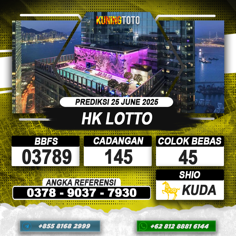 PREDIKSI TOGEL HONGKONG LOTTO 25 JUNI 2025 – Selamat Datang di Situs Prediksi Togel Online Akurat dan Resmi KUNINGTOTO. Permainan Togel atau Toto Gelap ini telah lama menarik perhatian dan banyak dimainkan oleh para bettor. Sejak dulu permainan togel dimainkan dengan memasang taruhan angka dengan bandar darat yang tersedia di daerah masing – masing. Namun sekarang ini dengan perkembangan teknologi yang semakin maju, para bettor bisa menikmati permainan togel secara online. Anda bisa menemukan banyak6ya Situs Bandar Togel Online yang menyediakan layanan pemaangan angka togel secara praktis. Dimana masing – masing situs bandar togel online resmi dan terpercaya tentu menyediakan layanan dan keuntungan yang berbeda – beda untuk Anda.