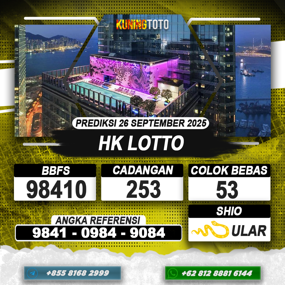 PREDIKSI TOGEL HONGKONG LOTTO 26 SEPTEMBER 2025 – Selamat Datang di Situs Prediksi Togel Online Akurat dan Resmi KUNINGTOTO. Permainan Togel atau Toto Gelap ini telah lama menarik perhatian dan banyak dimainkan oleh para bettor. Sejak dulu permainan togel dimainkan dengan memasang taruhan angka dengan bandar darat yang tersedia di daerah masing – masing. Namun sekarang ini dengan perkembangan teknologi yang semakin maju, para bettor bisa menikmati permainan togel secara online. Anda bisa menemukan banyak6ya Situs Bandar Togel Online yang menyediakan layanan pemaangan angka togel secara praktis. Dimana masing – masing situs bandar togel online resmi dan terpercaya tentu menyediakan layanan dan keuntungan yang berbeda – beda untuk Anda.