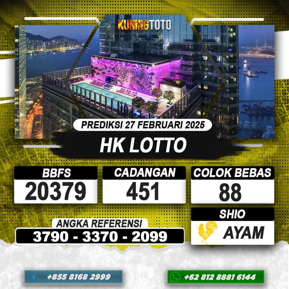PREDIKSI TOGEL HONGKONG LOTTO 28 FEB 2025 – Selamat Datang di Situs Prediksi Togel Online Akurat dan Resmi KUNINGTOTO. Permainan Togel atau Toto Gelap ini telah lama menarik perhatian dan banyak dimainkan oleh para bettor. Sejak dulu permainan togel dimainkan dengan memasang taruhan angka dengan bandar darat yang tersedia di daerah masing – masing. Namun sekarang ini dengan perkembangan teknologi yang semakin maju, para bettor bisa menikmati permainan togel secara online. Anda bisa menemukan banyak6ya Situs Bandar Togel Online yang menyediakan layanan pemaangan angka togel secara praktis. Dimana masing – masing situs bandar togel online resmi dan terpercaya tentu menyediakan layanan dan keuntungan yang berbeda – beda untuk Anda.