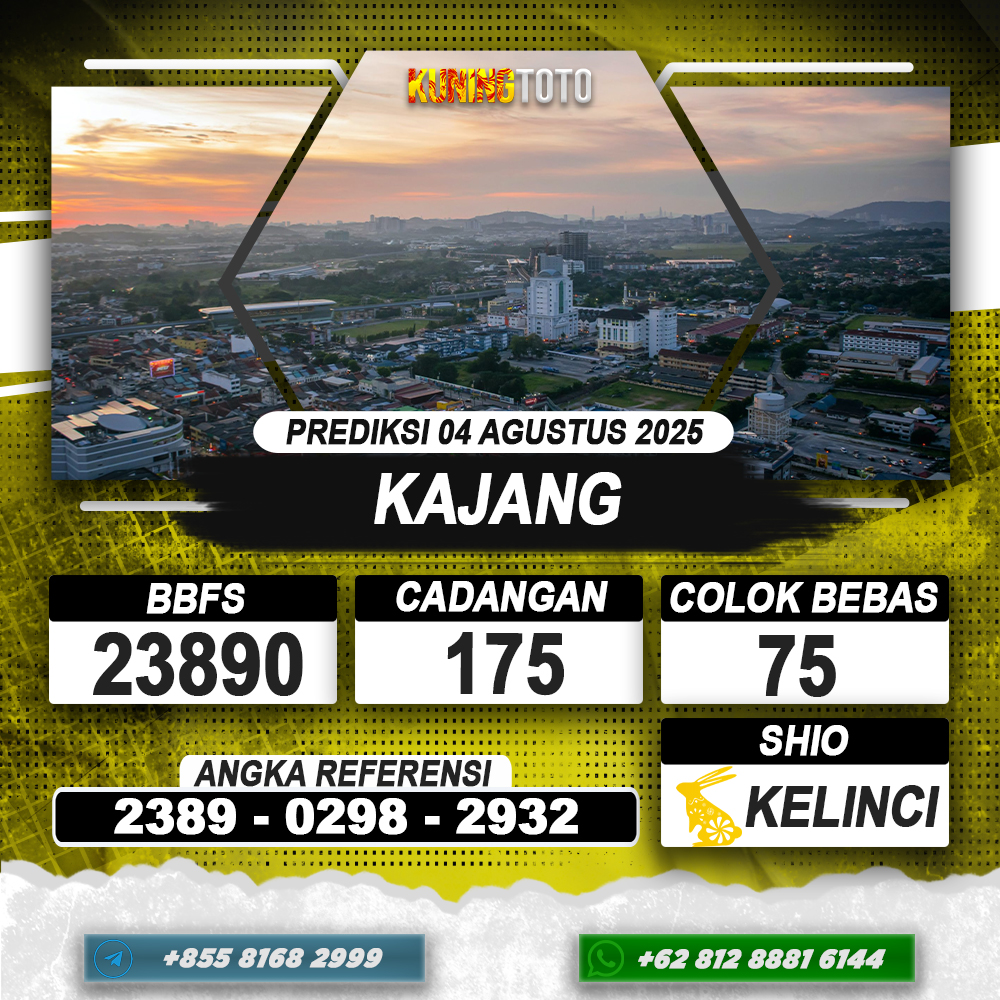 PREDIKSI TOGEL KAJANG 04 AGUSTUS 2025 – Selamat Datang di Situs Prediksi Togel Online Akurat dan Resmi KUNINGTOTO. Permainan Togel atau Toto Gelap ini telah lama menarik perhatian dan banyak dimainkan oleh para bettor. Sejak dulu permainan togel dimainkan dengan memasang taruhan angka dengan bandar darat yang tersedia di daerah masing – masing. Namun sekarang ini dengan perkembangan teknologi yang semakin maju, para bettor bisa menikmati permainan togel secara online. Anda bisa menemukan banyak6ya Situs Bandar Togel Online yang menyediakan layanan pemaangan angka togel secara praktis. Dimana masing – masing situs bandar togel online resmi dan terpercaya tentu menyediakan layanan dan keuntungan yang berbeda – beda untuk Anda.