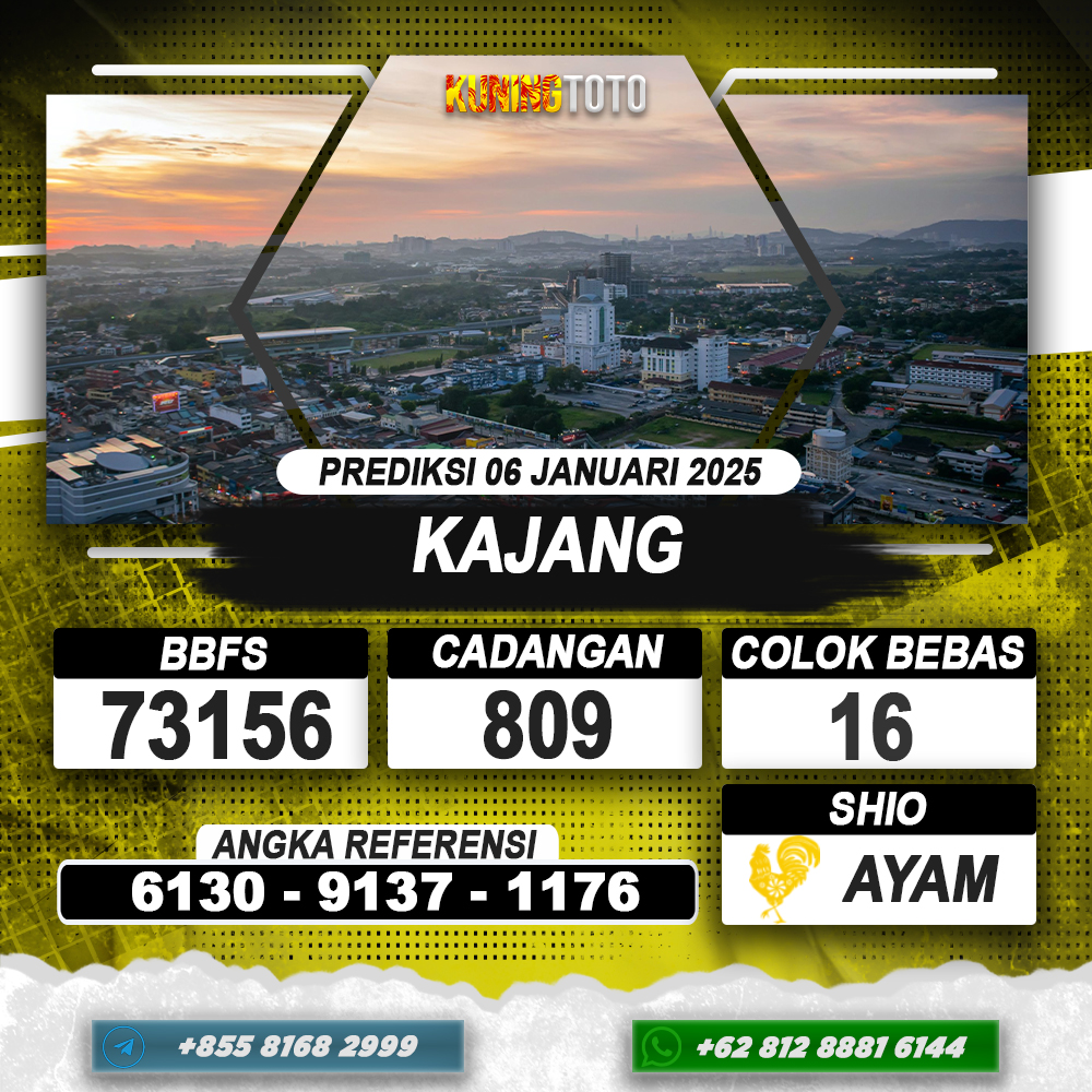 PREDIKSI TOGEL KAJANG 06 JAN 2025 – Selamat Datang di Situs Prediksi Togel Online Akurat dan Resmi KUNINGTOTO. Permainan Togel atau Toto Gelap ini telah lama menarik perhatian dan banyak dimainkan oleh para bettor. Sejak dulu permainan togel dimainkan dengan memasang taruhan angka dengan bandar darat yang tersedia di daerah masing – masing. Namun sekarang ini dengan perkembangan teknologi yang semakin maju, para bettor bisa menikmati permainan togel secara online. Anda bisa menemukan banyak6ya Situs Bandar Togel Online yang menyediakan layanan pemaangan angka togel secara praktis. Dimana masing – masing situs bandar togel online resmi dan terpercaya tentu menyediakan layanan dan keuntungan yang berbeda – beda untuk Anda.