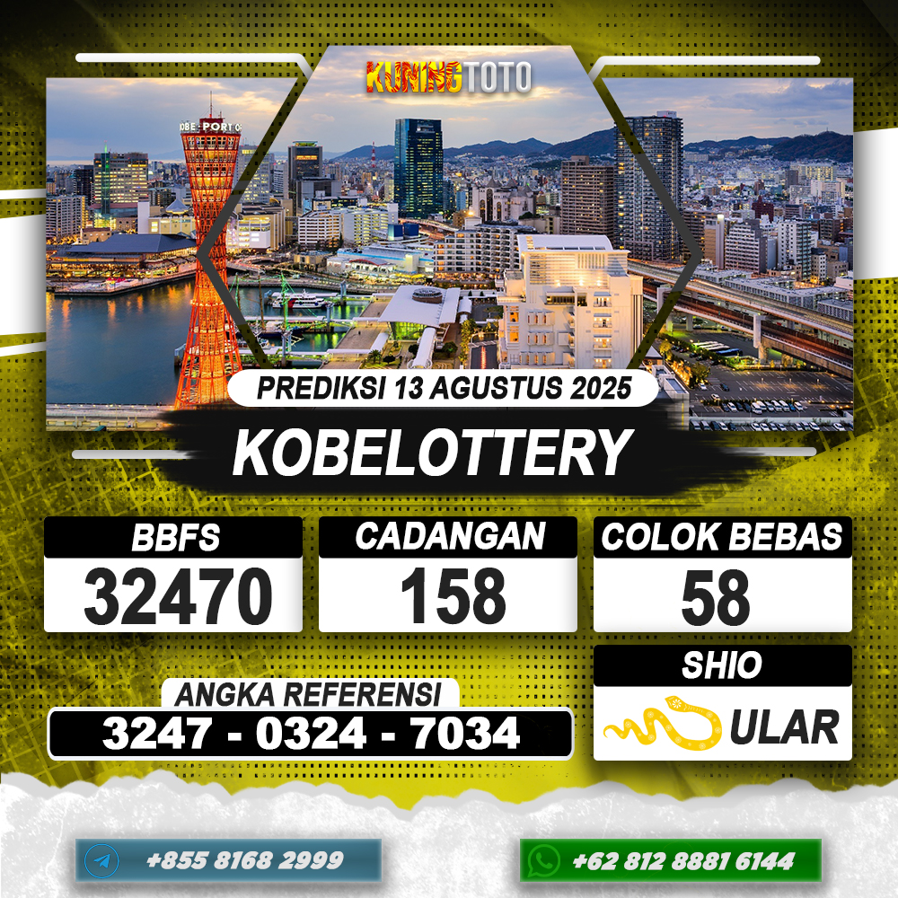 PREDIKSI TOGEL KOBELOTTERY 13 AGUSTUS 2025 – Selamat Datang di Situs Prediksi Togel Online Akurat dan Resmi KUNINGTOTO. Permainan Togel atau Toto Gelap ini telah lama menarik perhatian dan banyak dimainkan oleh para bettor. Sejak dulu permainan togel dimainkan dengan memasang taruhan angka dengan bandar darat yang tersedia di daerah masing – masing. Namun sekarang ini dengan perkembangan teknologi yang semakin maju, para bettor bisa menikmati permainan togel secara online. Anda bisa menemukan banyak6ya Situs Bandar Togel Online yang menyediakan layanan pemaangan angka togel secara praktis. Dimana masing – masing situs bandar togel online resmi dan terpercaya tentu menyediakan layanan dan keuntungan yang berbeda – beda untuk Anda.