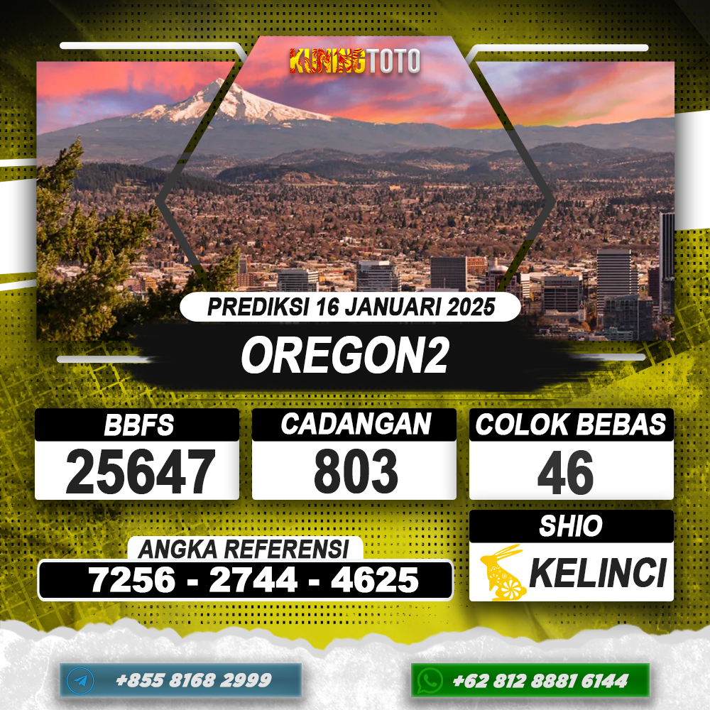 PREDIKSI TOGEL OREGON2 16 JAN 2025 – Selamat Datang di Situs Prediksi Togel Online Akurat dan Resmi KUNINGTOTO. Permainan Togel atau Toto Gelap ini telah lama menarik perhatian dan banyak dimainkan oleh para bettor. Sejak dulu permainan togel dimainkan dengan memasang taruhan angka dengan bandar darat yang tersedia di daerah masing – masing. Namun sekarang ini dengan perkembangan teknologi yang semakin maju, para bettor bisa menikmati permainan togel secara online. Anda bisa menemukan banyak6ya Situs Bandar Togel Online yang menyediakan layanan pemaangan angka togel secara praktis. Dimana masing – masing situs bandar togel online resmi dan terpercaya tentu menyediakan layanan dan keuntungan yang berbeda – beda untuk Anda.
