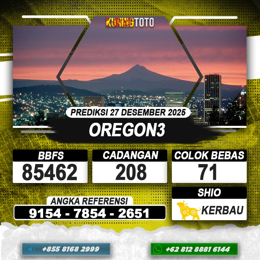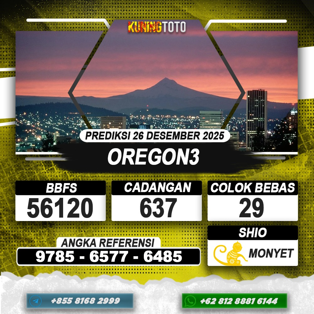 PREDIKSI TOGEL OREGON3 01 MAR 2025 – Selamat Datang di Situs Prediksi Togel Online Akurat dan Resmi KUNINGTOTO. Permainan Togel atau Toto Gelap ini telah lama menarik perhatian dan banyak dimainkan oleh para bettor. Sejak dulu permainan togel dimainkan dengan memasang taruhan angka dengan bandar darat yang tersedia di daerah masing – masing. Namun sekarang ini dengan perkembangan teknologi yang semakin maju, para bettor bisa menikmati permainan togel secara online. Anda bisa menemukan banyak6ya Situs Bandar Togel Online yang menyediakan layanan pemaangan angka togel secara praktis. Dimana masing – masing situs bandar togel online resmi dan terpercaya tentu menyediakan layanan dan keuntungan yang berbeda – beda untuk Anda.