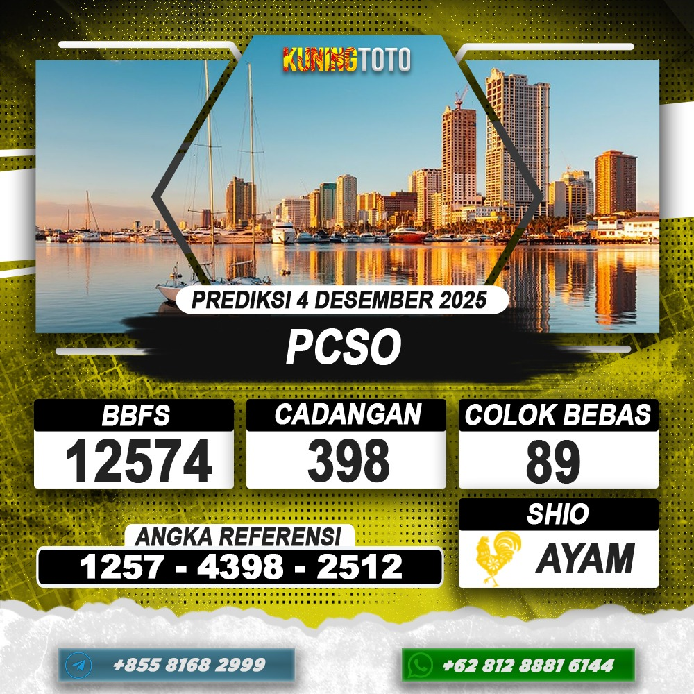 PREDIKSI TOGEL PCSO 04 DESEMBER 2025 – Selamat Datang di Situs Prediksi Togel Online Akurat dan Resmi KUNINGTOTO. Permainan Togel atau Toto Gelap ini telah lama menarik perhatian dan banyak dimainkan oleh para bettor. Sejak dulu permainan togel dimainkan dengan memasang taruhan angka dengan bandar darat yang tersedia di daerah masing – masing. Namun sekarang ini dengan perkembangan teknologi yang semakin maju, para bettor bisa menikmati permainan togel secara online. Anda bisa menemukan banyak6ya Situs Bandar Togel Online yang menyediakan layanan pemaangan angka togel secara praktis. Dimana masing – masing situs bandar togel online resmi dan terpercaya tentu menyediakan layanan dan keuntungan yang berbeda – beda untuk Anda.