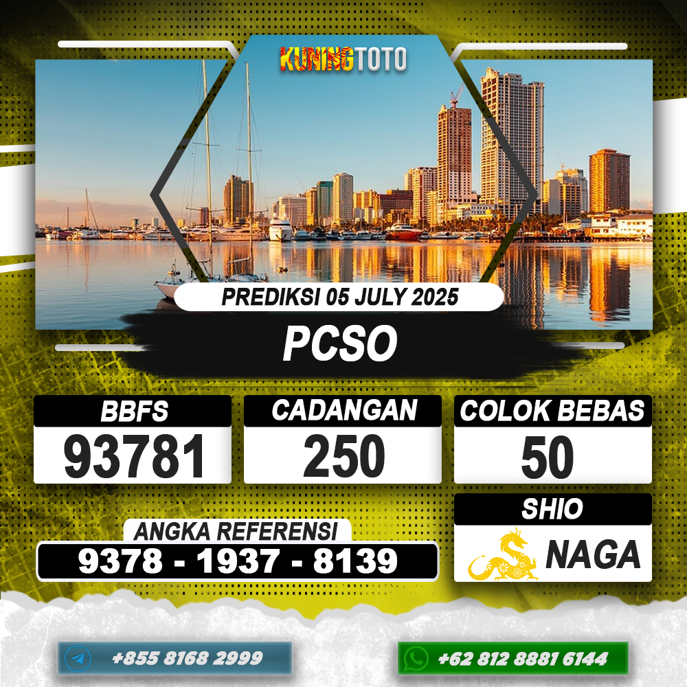 PREDIKSI TOGEL PCSO 05 JULI 2025 – Selamat Datang di Situs Prediksi Togel Online Akurat dan Resmi KUNINGTOTO. Permainan Togel atau Toto Gelap ini telah lama menarik perhatian dan banyak dimainkan oleh para bettor. Sejak dulu permainan togel dimainkan dengan memasang taruhan angka dengan bandar darat yang tersedia di daerah masing – masing. Namun sekarang ini dengan perkembangan teknologi yang semakin maju, para bettor bisa menikmati permainan togel secara online. Anda bisa menemukan banyak6ya Situs Bandar Togel Online yang menyediakan layanan pemaangan angka togel secara praktis. Dimana masing – masing situs bandar togel online resmi dan terpercaya tentu menyediakan layanan dan keuntungan yang berbeda – beda untuk Anda.