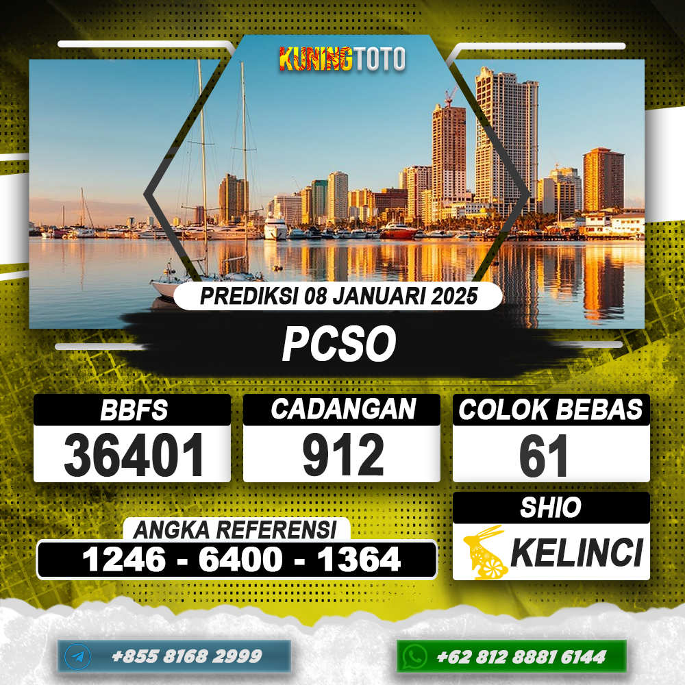 PREDIKSI TOGEL PCSO 08 JAN 2025 – Selamat Datang di Situs Prediksi Togel Online Akurat dan Resmi KUNINGTOTO. Permainan Togel atau Toto Gelap ini telah lama menarik perhatian dan banyak dimainkan oleh para bettor. Sejak dulu permainan togel dimainkan dengan memasang taruhan angka dengan bandar darat yang tersedia di daerah masing – masing. Namun sekarang ini dengan perkembangan teknologi yang semakin maju, para bettor bisa menikmati permainan togel secara online. Anda bisa menemukan banyak6ya Situs Bandar Togel Online yang menyediakan layanan pemaangan angka togel secara praktis. Dimana masing – masing situs bandar togel online resmi dan terpercaya tentu menyediakan layanan dan keuntungan yang berbeda – beda untuk Anda.