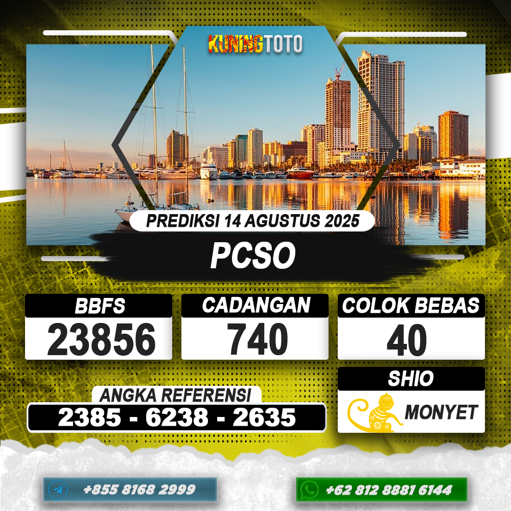 PREDIKSI TOGEL PCSO 14 AGUSTUS 2025 – Selamat Datang di Situs Prediksi Togel Online Akurat dan Resmi KUNINGTOTO. Permainan Togel atau Toto Gelap ini telah lama menarik perhatian dan banyak dimainkan oleh para bettor. Sejak dulu permainan togel dimainkan dengan memasang taruhan angka dengan bandar darat yang tersedia di daerah masing – masing. Namun sekarang ini dengan perkembangan teknologi yang semakin maju, para bettor bisa menikmati permainan togel secara online. Anda bisa menemukan banyak6ya Situs Bandar Togel Online yang menyediakan layanan pemaangan angka togel secara praktis. Dimana masing – masing situs bandar togel online resmi dan terpercaya tentu menyediakan layanan dan keuntungan yang berbeda – beda untuk Anda.