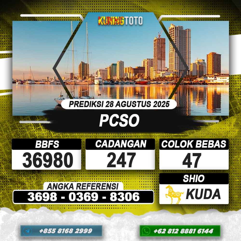 PREDIKSI TOGEL PCSO 28 AGUSTUS 2025 – Selamat Datang di Situs Prediksi Togel Online Akurat dan Resmi KUNINGTOTO. Permainan Togel atau Toto Gelap ini telah lama menarik perhatian dan banyak dimainkan oleh para bettor. Sejak dulu permainan togel dimainkan dengan memasang taruhan angka dengan bandar darat yang tersedia di daerah masing – masing. Namun sekarang ini dengan perkembangan teknologi yang semakin maju, para bettor bisa menikmati permainan togel secara online. Anda bisa menemukan banyak6ya Situs Bandar Togel Online yang menyediakan layanan pemaangan angka togel secara praktis. Dimana masing – masing situs bandar togel online resmi dan terpercaya tentu menyediakan layanan dan keuntungan yang berbeda – beda untuk Anda.