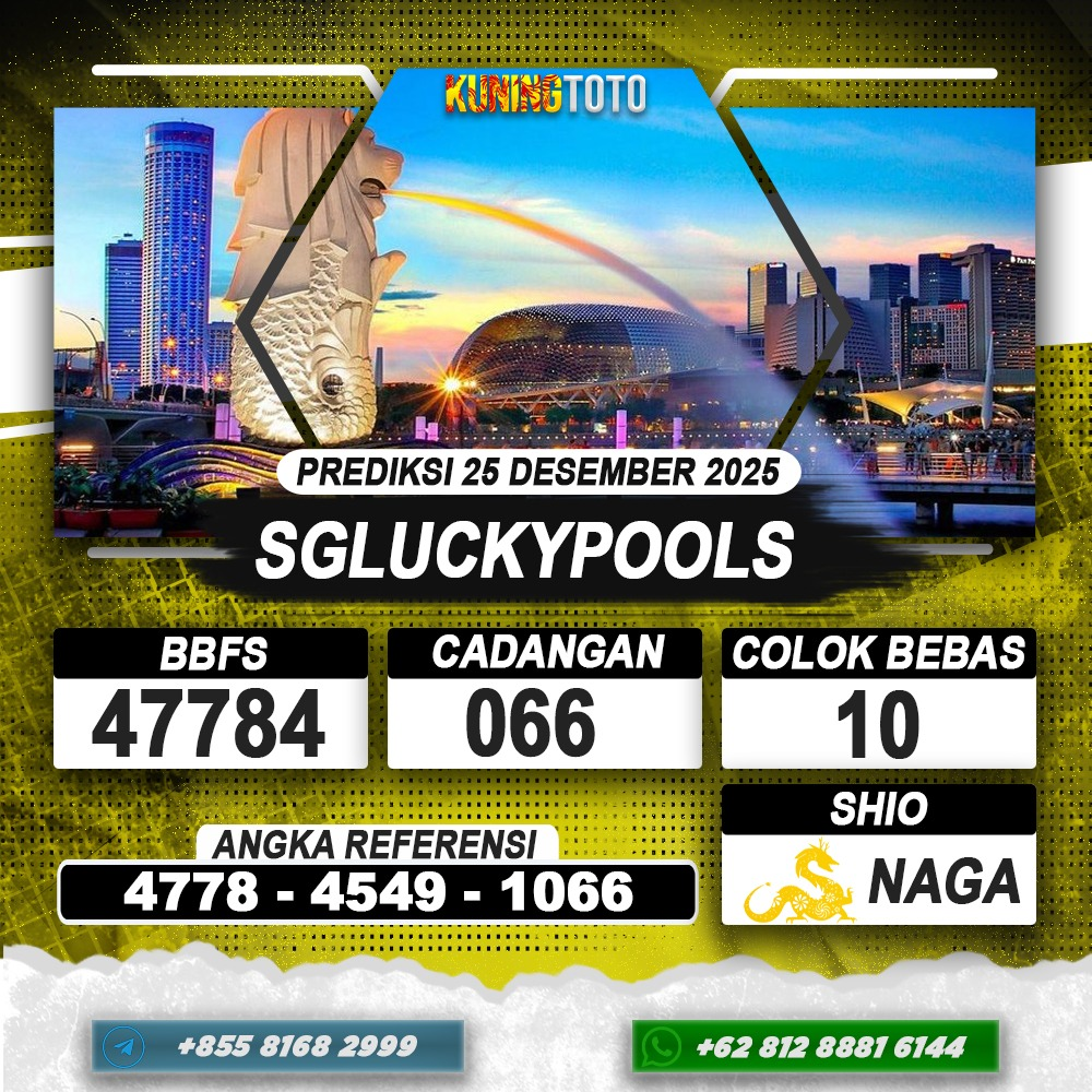 PREDIKSI TOGEL SGLUCKYPOOLS 25 DESEMBER 2025 – Selamat Datang di Situs Prediksi Togel Online Akurat dan Resmi KUNINGTOTO. Permainan Togel atau Toto Gelap ini telah lama menarik perhatian dan banyak dimainkan oleh para bettor. Sejak dulu permainan togel dimainkan dengan memasang taruhan angka dengan bandar darat yang tersedia di daerah masing – masing. Namun sekarang ini dengan perkembangan teknologi yang semakin maju, para bettor bisa menikmati permainan togel secara online. Anda bisa menemukan banyak6ya Situs Bandar Togel Online yang menyediakan layanan pemaangan angka togel secara praktis. Dimana masing – masing situs bandar togel online resmi dan terpercaya tentu menyediakan layanan dan keuntungan yang berbeda – beda untuk Anda.