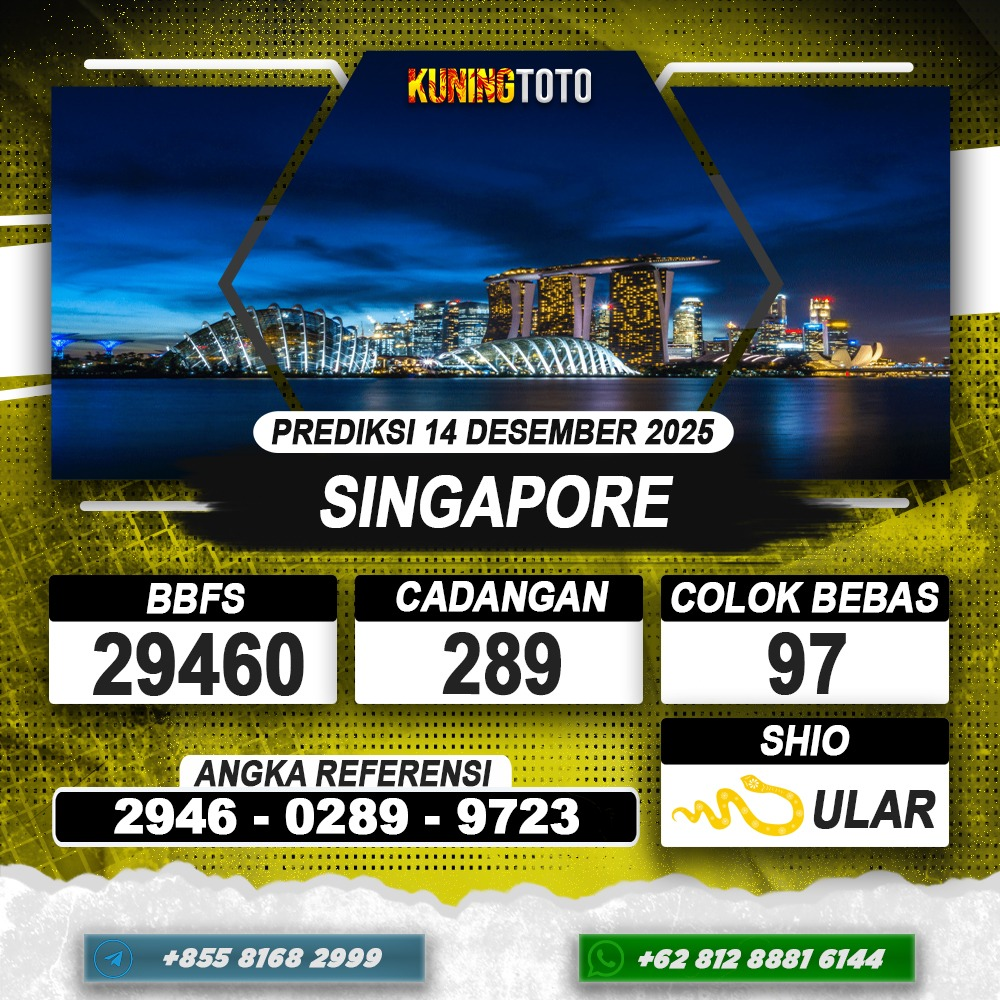 PREDIKSI TOGEL SINGAPORE 14 DESEMBER 2025 – Selamat Datang di Situs Prediksi Togel Online Akurat dan Resmi KUNINGTOTO. Permainan Togel atau Toto Gelap ini telah lama menarik perhatian dan banyak dimainkan oleh para bettor. Sejak dulu permainan togel dimainkan dengan memasang taruhan angka dengan bandar darat yang tersedia di daerah masing – masing. Namun sekarang ini dengan perkembangan teknologi yang semakin maju, para bettor bisa menikmati permainan togel secara online. Anda bisa menemukan banyak6ya Situs Bandar Togel Online yang menyediakan layanan pemaangan angka togel secara praktis. Dimana masing – masing situs bandar togel online resmi dan terpercaya tentu menyediakan layanan dan keuntungan yang berbeda – beda untuk Anda.