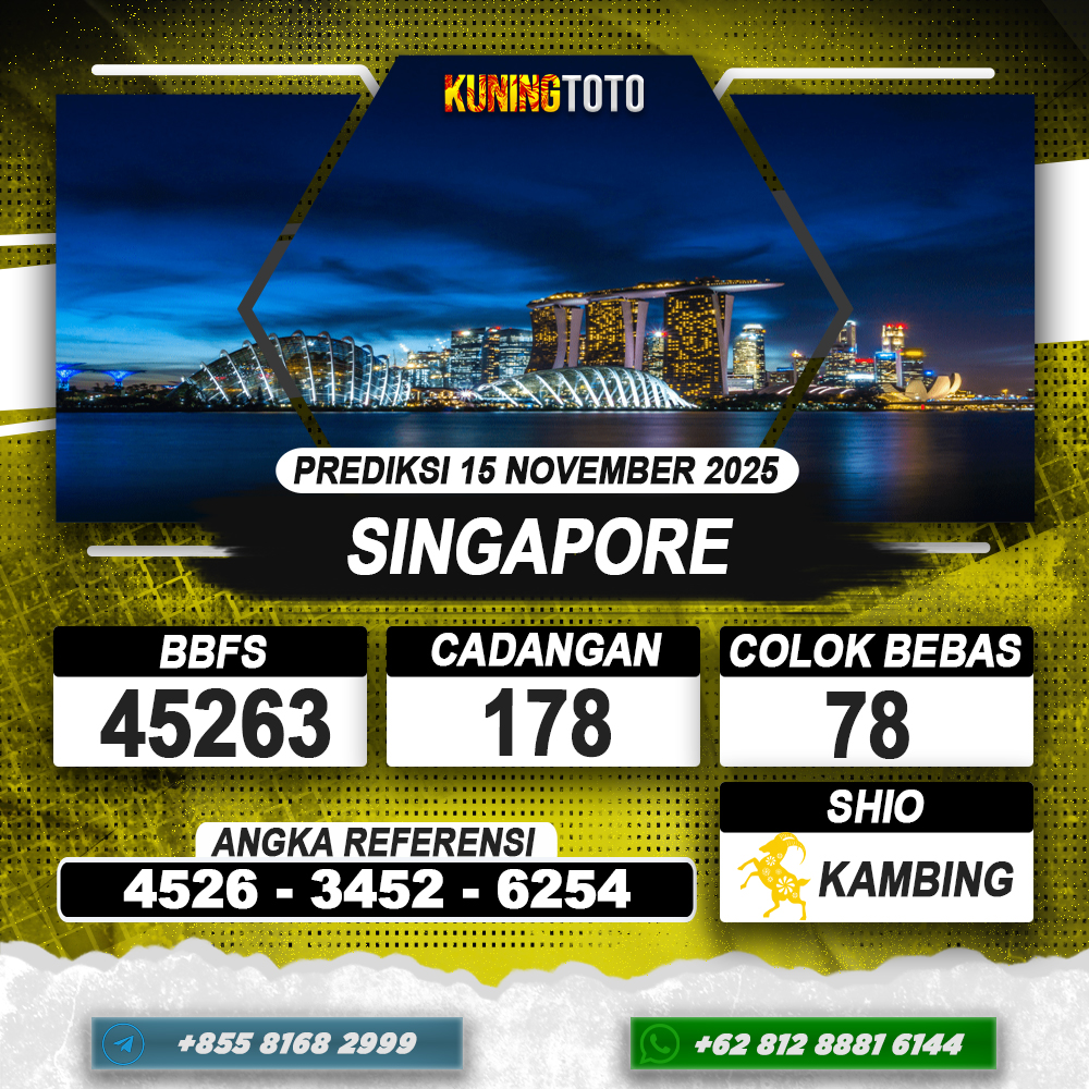 PREDIKSI TOGEL SINGAPORE 15 NOVEMBER 2025 – Selamat Datang di Situs Prediksi Togel Online Akurat dan Resmi KUNINGTOTO. Permainan Togel atau Toto Gelap ini telah lama menarik perhatian dan banyak dimainkan oleh para bettor. Sejak dulu permainan togel dimainkan dengan memasang taruhan angka dengan bandar darat yang tersedia di daerah masing – masing. Namun sekarang ini dengan perkembangan teknologi yang semakin maju, para bettor bisa menikmati permainan togel secara online. Anda bisa menemukan banyak6ya Situs Bandar Togel Online yang menyediakan layanan pemaangan angka togel secara praktis. Dimana masing – masing situs bandar togel online resmi dan terpercaya tentu menyediakan layanan dan keuntungan yang berbeda – beda untuk Anda.