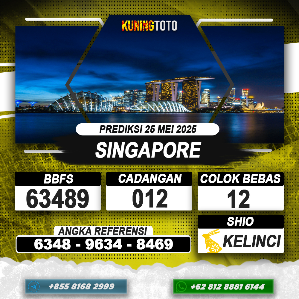 PREDIKSI TOGEL SINGAPORE 25 MEI 2025 – Selamat Datang di Situs Prediksi Togel Online Akurat dan Resmi KUNINGTOTO. Permainan Togel atau Toto Gelap ini telah lama menarik perhatian dan banyak dimainkan oleh para bettor. Sejak dulu permainan togel dimainkan dengan memasang taruhan angka dengan bandar darat yang tersedia di daerah masing – masing. Namun sekarang ini dengan perkembangan teknologi yang semakin maju, para bettor bisa menikmati permainan togel secara online. Anda bisa menemukan banyak6ya Situs Bandar Togel Online yang menyediakan layanan pemaangan angka togel secara praktis. Dimana masing – masing situs bandar togel online resmi dan terpercaya tentu menyediakan layanan dan keuntungan yang berbeda – beda untuk Anda.