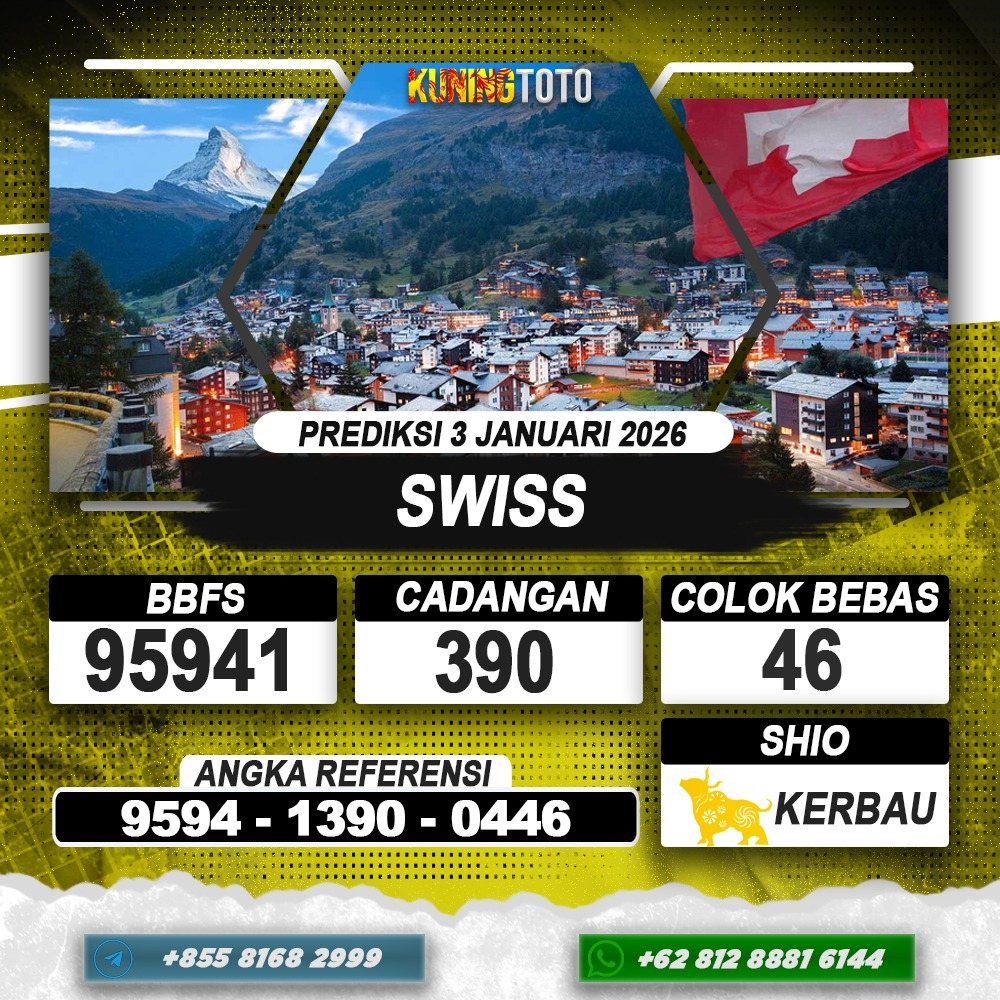 PREDIKSI TOGEL SWISS 03 JANUARI 2026 – Selamat Datang di Situs Prediksi Togel Online Akurat dan Resmi KUNINGTOTO. Permainan Togel atau Toto Gelap ini telah lama menarik perhatian dan banyak dimainkan oleh para bettor. Sejak dulu permainan togel dimainkan dengan memasang taruhan angka dengan bandar darat yang tersedia di daerah masing – masing. Namun sekarang ini dengan perkembangan teknologi yang semakin maju, para bettor bisa menikmati permainan togel secara online. Anda bisa menemukan banyak6ya Situs Bandar Togel Online yang menyediakan layanan pemaangan angka togel secara praktis. Dimana masing – masing situs bandar togel online resmi dan terpercaya tentu menyediakan layanan dan keuntungan yang berbeda – beda untuk Anda.