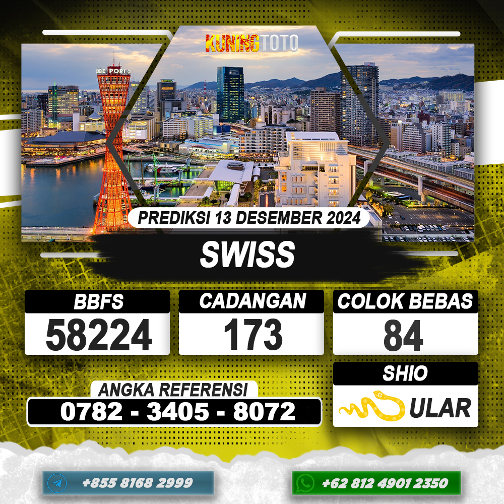 PREDIKSI TOGEL SWISS 13 DEC 2024 – Selamat Datang di Situs Prediksi Togel Online Akurat dan Resmi KUNINGTOTO. Permainan Togel atau Toto Gelap ini telah lama menarik perhatian dan banyak dimainkan oleh para bettor. Sejak dulu permainan togel dimainkan dengan memasang taruhan angka dengan bandar darat yang tersedia di daerah masing – masing. Namun sekarang ini dengan perkembangan teknologi yang semakin maju, para bettor bisa menikmati permainan togel secara online. Anda bisa menemukan banyaknya Situs Bandar Togel Online yang menyediakan layanan pemasangan angka togel secara praktis. Dimana masing – masing situs bandar togel online resmi dan terpercaya tentu menyediakan layanan dan keuntungan yang berbeda – beda untuk Anda.