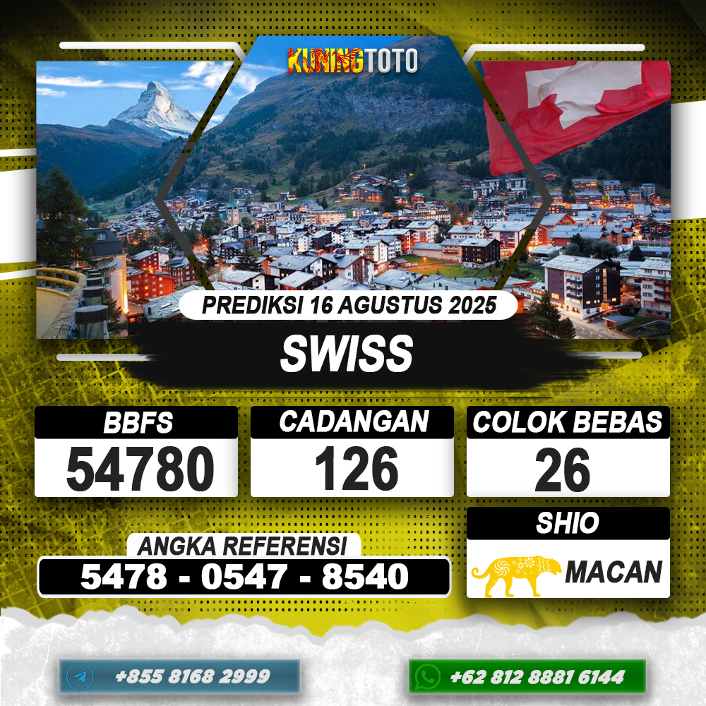 PREDIKSI SWISS 16 AGUSTUS 2025 | PREDIKSI TOGEL KUNINGTOTO
