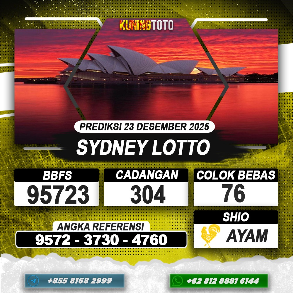 PREDIKSI TOGEL SYDNEY 23 DESEMBER 2025 – Selamat Datang di Situs Prediksi Togel Online Akurat dan Resmi KUNINGTOTO. Permainan Togel atau Toto Gelap ini telah lama menarik perhatian dan banyak dimainkan oleh para bettor. Sejak dulu permainan togel dimainkan dengan memasang taruhan angka dengan bandar darat yang tersedia di daerah masing – masing. Namun sekarang ini dengan perkembangan teknologi yang semakin maju, para bettor bisa menikmati permainan togel secara online. Anda bisa menemukan banyak6ya Situs Bandar Togel Online yang menyediakan layanan pemaangan angka togel secara praktis. Dimana masing – masing situs bandar togel online resmi dan terpercaya tentu menyediakan layanan dan keuntungan yang berbeda – beda untuk Anda.