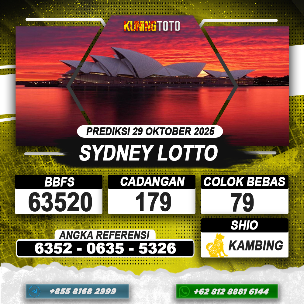 PREDIKSI TOGEL SYDNEY LOTTO 29 OKTOBER 2025 – Selamat Datang di Situs Prediksi Togel Online Akurat dan Resmi KUNINGTOTO. Permainan Togel atau Toto Gelap ini telah lama menarik perhatian dan banyak dimainkan oleh para bettor. Sejak dulu permainan togel dimainkan dengan memasang taruhan angka dengan bandar darat yang tersedia di daerah masing – masing. Namun sekarang ini dengan perkembangan teknologi yang semakin maju, para bettor bisa menikmati permainan togel secara online. Anda bisa menemukan banyak6ya Situs Bandar Togel Online yang menyediakan layanan pemaangan angka togel secara praktis. Dimana masing – masing situs bandar togel online resmi dan terpercaya tentu menyediakan layanan dan keuntungan yang berbeda – beda untuk Anda.