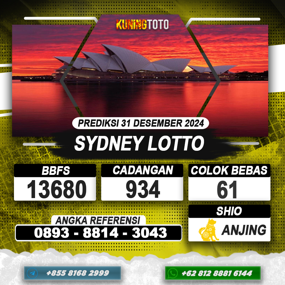 PREDIKSI TOGEL SYDNEY LOTTO 31 DES 2024 – Selamat Datang di Situs Prediksi Togel Online Akurat dan Resmi KUNINGTOTO. Permainan Togel atau Toto Gelap ini telah lama menarik perhatian dan banyak dimainkan oleh para bettor. Sejak dulu permainan togel dimainkan dengan memasang taruhan angka dengan bandar darat yang tersedia di daerah masing – masing. Namun sekarang ini dengan perkembangan teknologi yang semakin maju, para bettor bisa menikmati permainan togel secara online. Anda bisa menemukan banyaknya Situs Bandar Togel Online yang menyediakan layanan pemaangan angka togel secara praktis. Dimana masing – masing situs bandar togel online resmi dan terpercaya tentu menyediakan layanan dan keuntungan yang berbeda – beda untuk Anda.