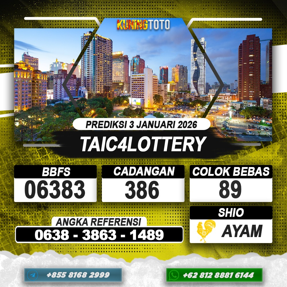 PREDIKSI TOGEL TAIC4LOTTERY 03 JANUARI 2026 – Selamat Datang di Situs Prediksi Togel Online Akurat dan Resmi KUNINGTOTO. Permainan Togel atau Toto Gelap ini telah lama menarik perhatian dan banyak dimainkan oleh para bettor. Sejak dulu permainan togel dimainkan dengan memasang taruhan angka dengan bandar darat yang tersedia di daerah masing – masing. Namun sekarang ini dengan perkembangan teknologi yang semakin maju, para bettor bisa menikmati permainan togel secara online. Anda bisa menemukan banyak6ya Situs Bandar Togel Online yang menyediakan layanan pemaangan angka togel secara praktis. Dimana masing – masing situs bandar togel online resmi dan terpercaya tentu menyediakan layanan dan keuntungan yang berbeda – beda untuk Anda.