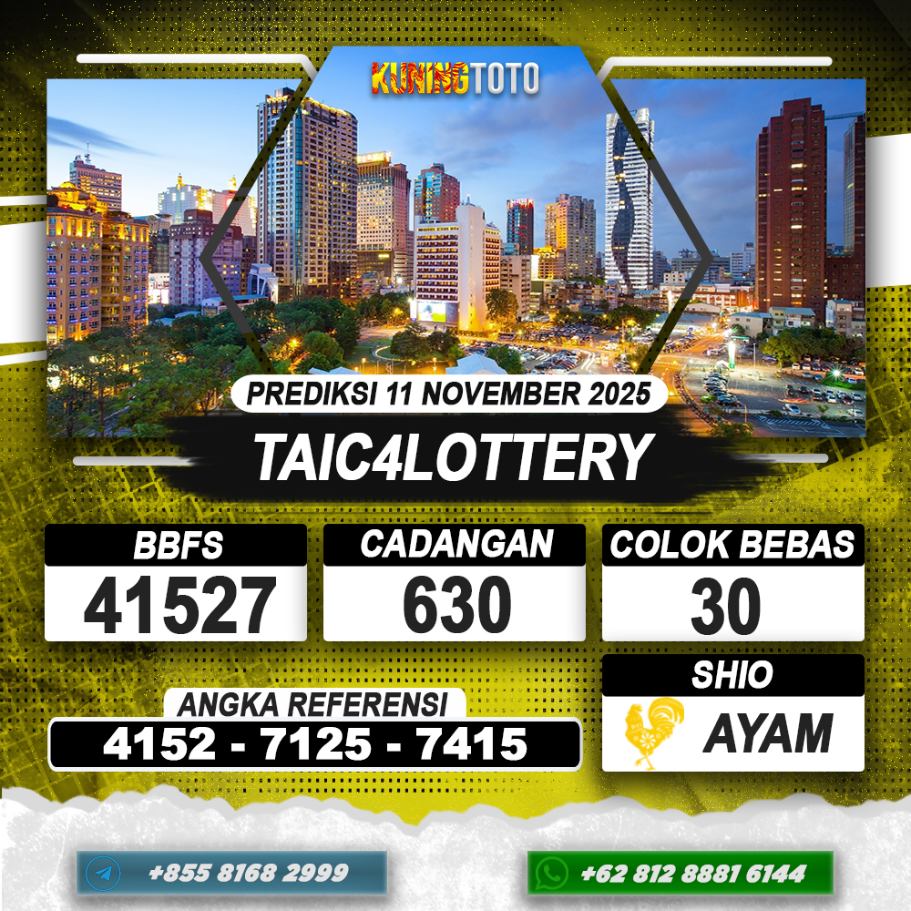 PREDIKSI TOGEL TAIC4LOTTERY 11 NOVEMBER 2025 – Selamat Datang di Situs Prediksi Togel Online Akurat dan Resmi KUNINGTOTO. Permainan Togel atau Toto Gelap ini telah lama menarik perhatian dan banyak dimainkan oleh para bettor. Sejak dulu permainan togel dimainkan dengan memasang taruhan angka dengan bandar darat yang tersedia di daerah masing – masing. Namun sekarang ini dengan perkembangan teknologi yang semakin maju, para bettor bisa menikmati permainan togel secara online. Anda bisa menemukan banyak6ya Situs Bandar Togel Online yang menyediakan layanan pemaangan angka togel secara praktis. Dimana masing – masing situs bandar togel online resmi dan terpercaya tentu menyediakan layanan dan keuntungan yang berbeda – beda untuk Anda.