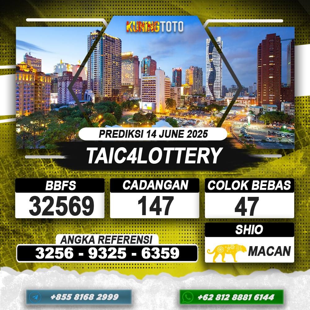 PREDIKSI TOGEL TAIC4LOTTERY 14 JUNE 2025 – Selamat Datang di Situs Prediksi Togel Online Akurat dan Resmi KUNINGTOTO. Permainan Togel atau Toto Gelap ini telah lama menarik perhatian dan banyak dimainkan oleh para bettor. Sejak dulu permainan togel dimainkan dengan memasang taruhan angka dengan bandar darat yang tersedia di daerah masing – masing. Namun sekarang ini dengan perkembangan teknologi yang semakin maju, para bettor bisa menikmati permainan togel secara online. Anda bisa menemukan banyak6ya Situs Bandar Togel Online yang menyediakan layanan pemaangan angka togel secara praktis. Dimana masing – masing situs bandar togel online resmi dan terpercaya tentu menyediakan layanan dan keuntungan yang berbeda – beda untuk Anda.