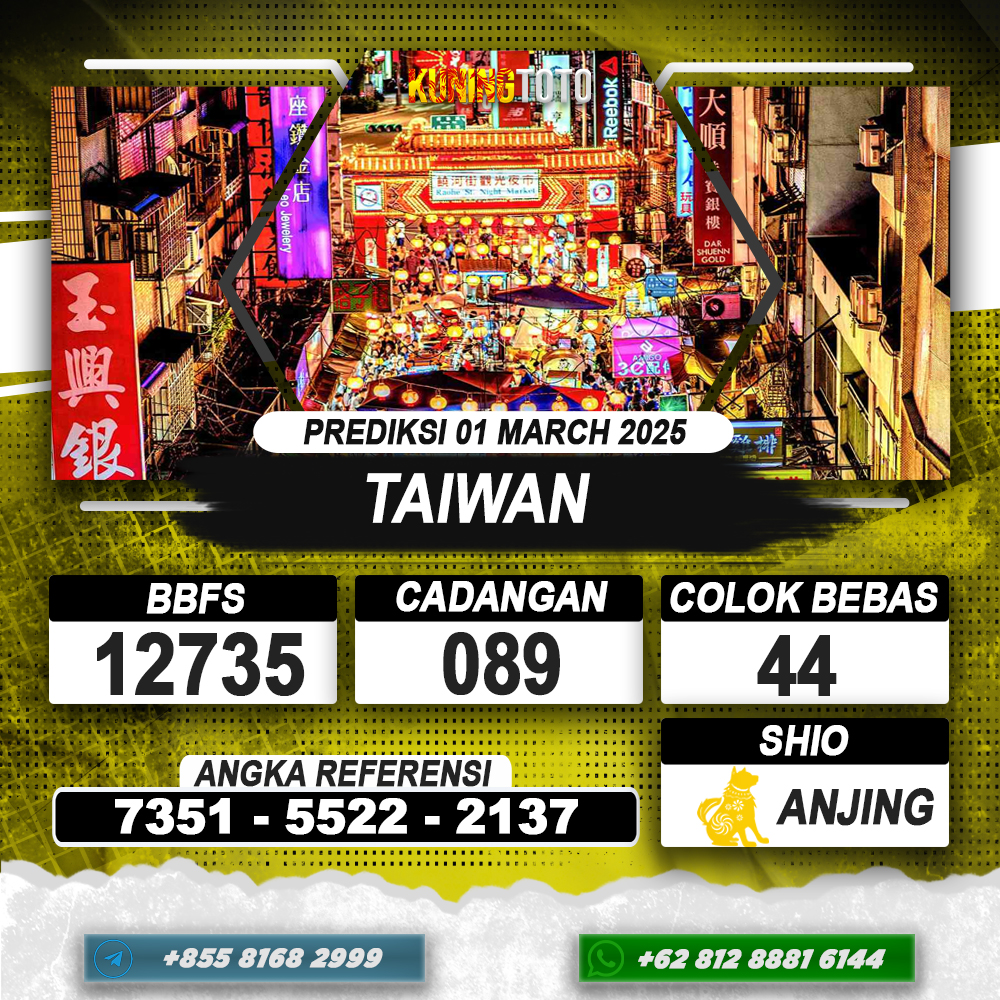 PREDIKSI TOGEL TAIWAN 01 MAR 2025 – Selamat Datang di Situs Prediksi Togel Online Akurat dan Resmi KUNINGTOTO. Permainan Togel atau Toto Gelap ini telah lama menarik perhatian dan banyak dimainkan oleh para bettor. Sejak dulu permainan togel dimainkan dengan memasang taruhan angka dengan bandar darat yang tersedia di daerah masing – masing. Namun sekarang ini dengan perkembangan teknologi yang semakin maju, para bettor bisa menikmati permainan togel secara online. Anda bisa menemukan banyak6ya Situs Bandar Togel Online yang menyediakan layanan pemaangan angka togel secara praktis. Dimana masing – masing situs bandar togel online resmi dan terpercaya tentu menyediakan layanan dan keuntungan yang berbeda – beda untuk Anda.