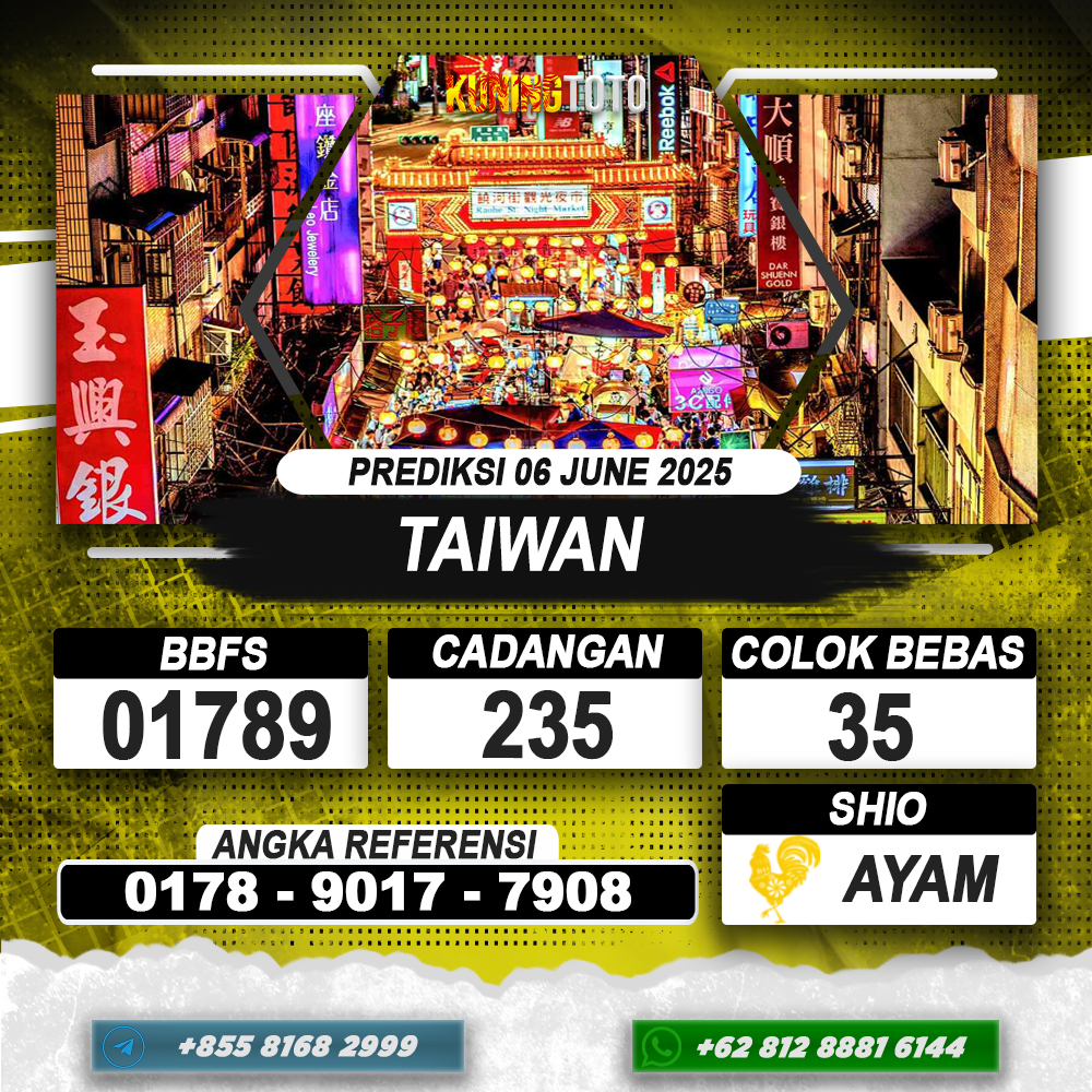 PREDIKSI TOGEL TAIWAN 06 MEI 2025 – Selamat Datang di Situs Prediksi Togel Online Akurat dan Resmi KUNINGTOTO. Permainan Togel atau Toto Gelap ini telah lama menarik perhatian dan banyak dimainkan oleh para bettor. Sejak dulu permainan togel dimainkan dengan memasang taruhan angka dengan bandar darat yang tersedia di daerah masing – masing. Namun sekarang ini dengan perkembangan teknologi yang semakin maju, para bettor bisa menikmati permainan togel secara online. Anda bisa menemukan banyak6ya Situs Bandar Togel Online yang menyediakan layanan pemaangan angka togel secara praktis. Dimana masing – masing situs bandar togel online resmi dan terpercaya tentu menyediakan layanan dan keuntungan yang berbeda – beda untuk Anda.