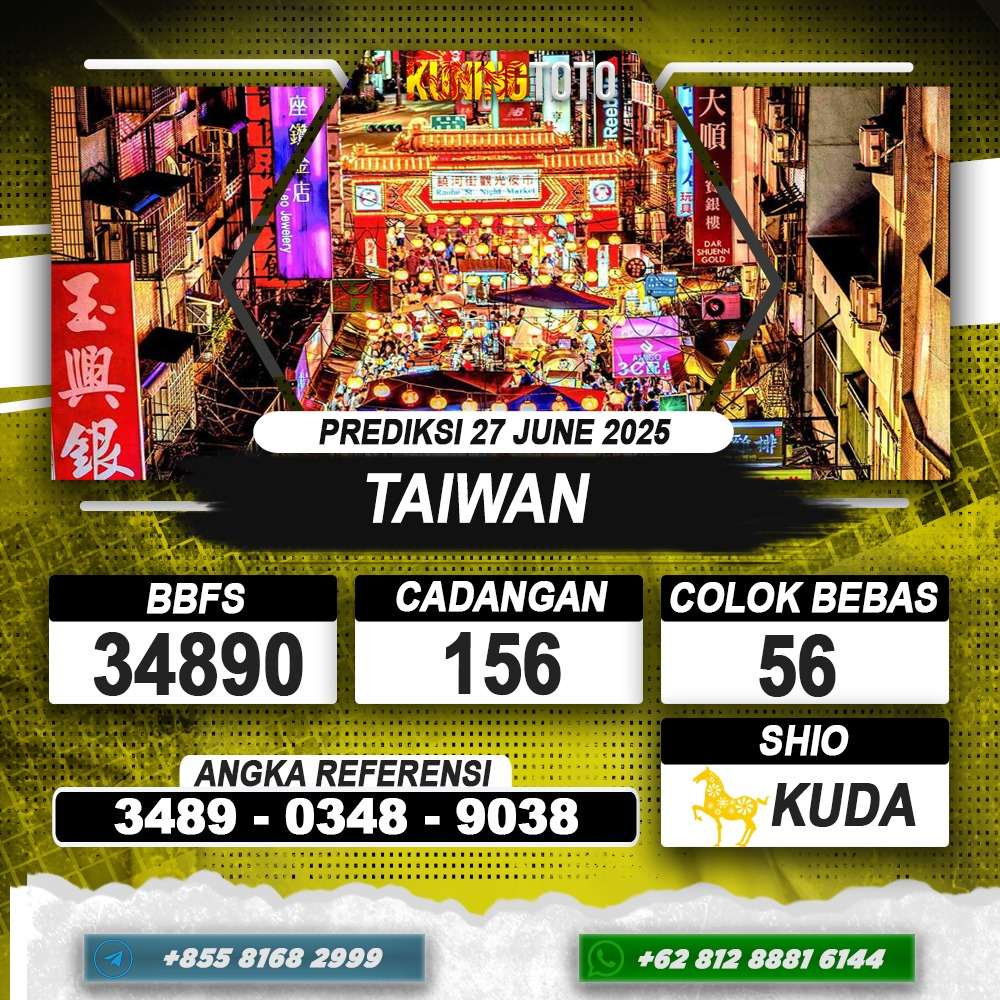 PREDIKSI TOGEL TAIWAN 27 JUNI 2025 – Selamat Datang di Situs Prediksi Togel Online Akurat dan Resmi KUNINGTOTO. Permainan Togel atau Toto Gelap ini telah lama menarik perhatian dan banyak dimainkan oleh para bettor. Sejak dulu permainan togel dimainkan dengan memasang taruhan angka dengan bandar darat yang tersedia di daerah masing – masing. Namun sekarang ini dengan perkembangan teknologi yang semakin maju, para bettor bisa menikmati permainan togel secara online. Anda bisa menemukan banyak6ya Situs Bandar Togel Online yang menyediakan layanan pemaangan angka togel secara praktis. Dimana masing – masing situs bandar togel online resmi dan terpercaya tentu menyediakan layanan dan keuntungan yang berbeda – beda untuk Anda.