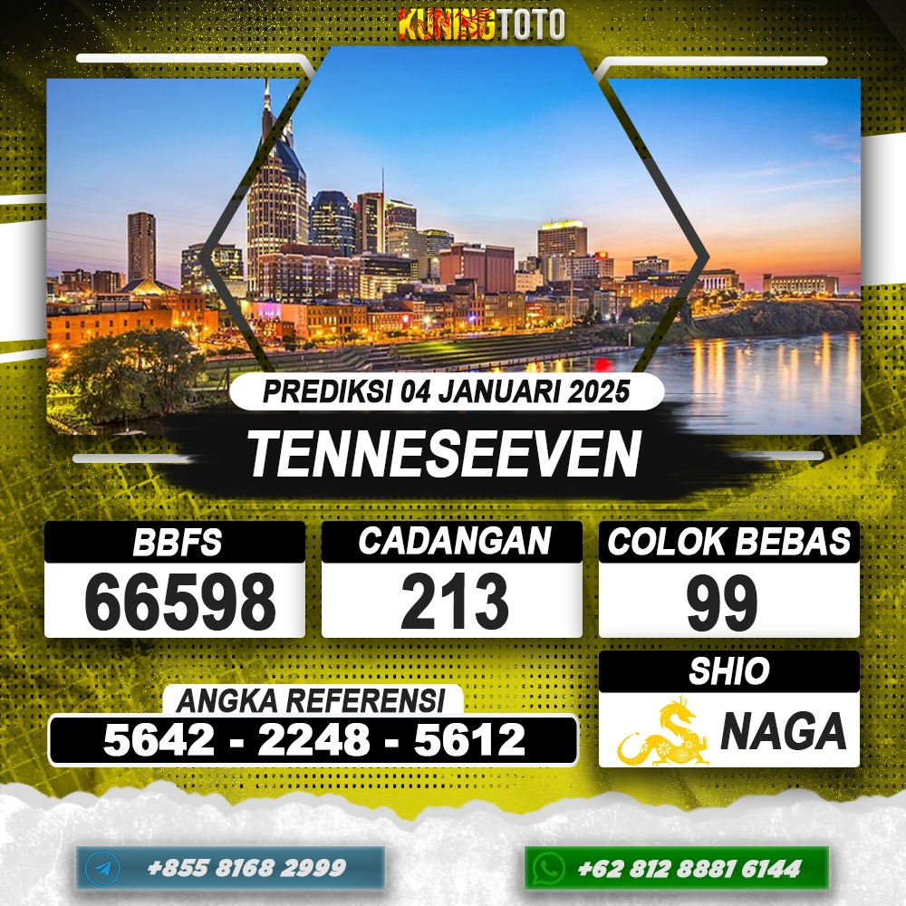 PREDIKSI TOGEL TENNESEEVEN 04 JANUARI 2026 – Selamat Datang di Situs Prediksi Togel Online Akurat dan Resmi KUNINGTOTO. Permainan Togel atau Toto Gelap ini telah lama menarik perhatian dan banyak dimainkan oleh para bettor. Sejak dulu permainan togel dimainkan dengan memasang taruhan angka dengan bandar darat yang tersedia di daerah masing – masing. Namun sekarang ini dengan perkembangan teknologi yang semakin maju, para bettor bisa menikmati permainan togel secara online. Anda bisa menemukan banyak6ya Situs Bandar Togel Online yang menyediakan layanan pemaangan angka togel secara praktis. Dimana masing – masing situs bandar togel online resmi dan terpercaya tentu menyediakan layanan dan keuntungan yang berbeda – beda untuk Anda.