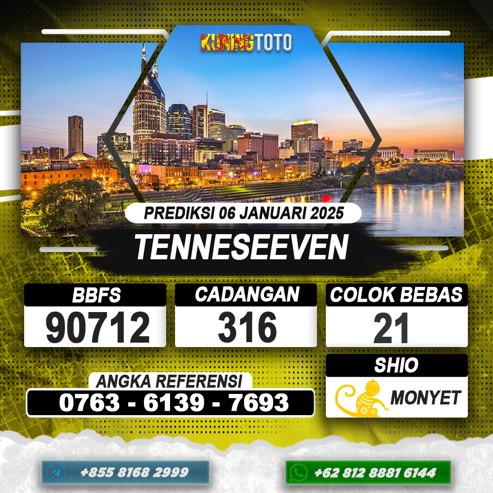 PREDIKSI TOGEL TENNESEEVEN 06 JAN 2025 – Selamat Datang di Situs Prediksi Togel Online Akurat dan Resmi KUNINGTOTO. Permainan Togel atau Toto Gelap ini telah lama menarik perhatian dan banyak dimainkan oleh para bettor. Sejak dulu permainan togel dimainkan dengan memasang taruhan angka dengan bandar darat yang tersedia di daerah masing – masing. Namun sekarang ini dengan perkembangan teknologi yang semakin maju, para bettor bisa menikmati permainan togel secara online. Anda bisa menemukan banyaknya Situs Bandar Togel Online yang menyediakan layanan pemaangan angka togel secara praktis. Dimana masing – masing situs bandar togel online resmi dan terpercaya tentu menyediakan layanan dan keuntungan yang berbeda – beda untuk Anda.