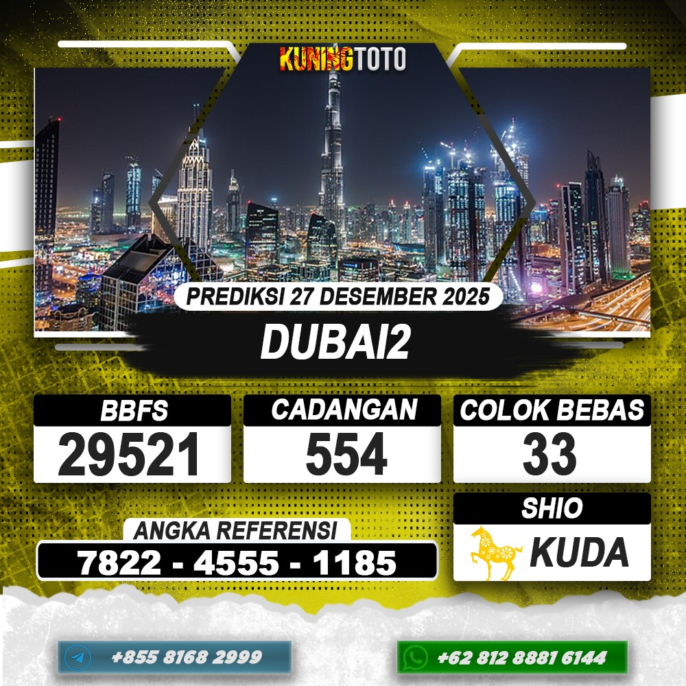 PREDIKSI TOGEL DUBAI2 31 MAY 2023 – Selamat Datang di Situs Prediksi Togel Online Akurat dan Resmi KUNINGTOTO. Permainan Togel atau Toto Gelap ini telah lama menarik perhatian dan banyak dimainkan oleh para bettor. Sejak dulu permainan togel dimainkan dengan memasang taruhan angka dengan bandar darat yang tersedia di daerah masing – masing. Namun sekarang ini dengan perkembangan teknologi yang semakin maju, para bettor bisa menikmati permainan togel secara online. Anda bisa menemukan banyaknya Situs Bandar Togel Online yang menyediakan layanan pemasangan angka togel secara praktis. Dimana masing – masing situs bandar togel online resmi dan terpercaya tentu menyediakan layanan dan keuntungan yang berbeda – beda untuk Anda.