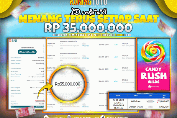 Bukti JackPot Slot Member KUNINGTOTO 26 November 2024 Candy Rush Wilds Memenangkan Jackpot Permainan Slot online sangat populer di kalangan pemain judi…