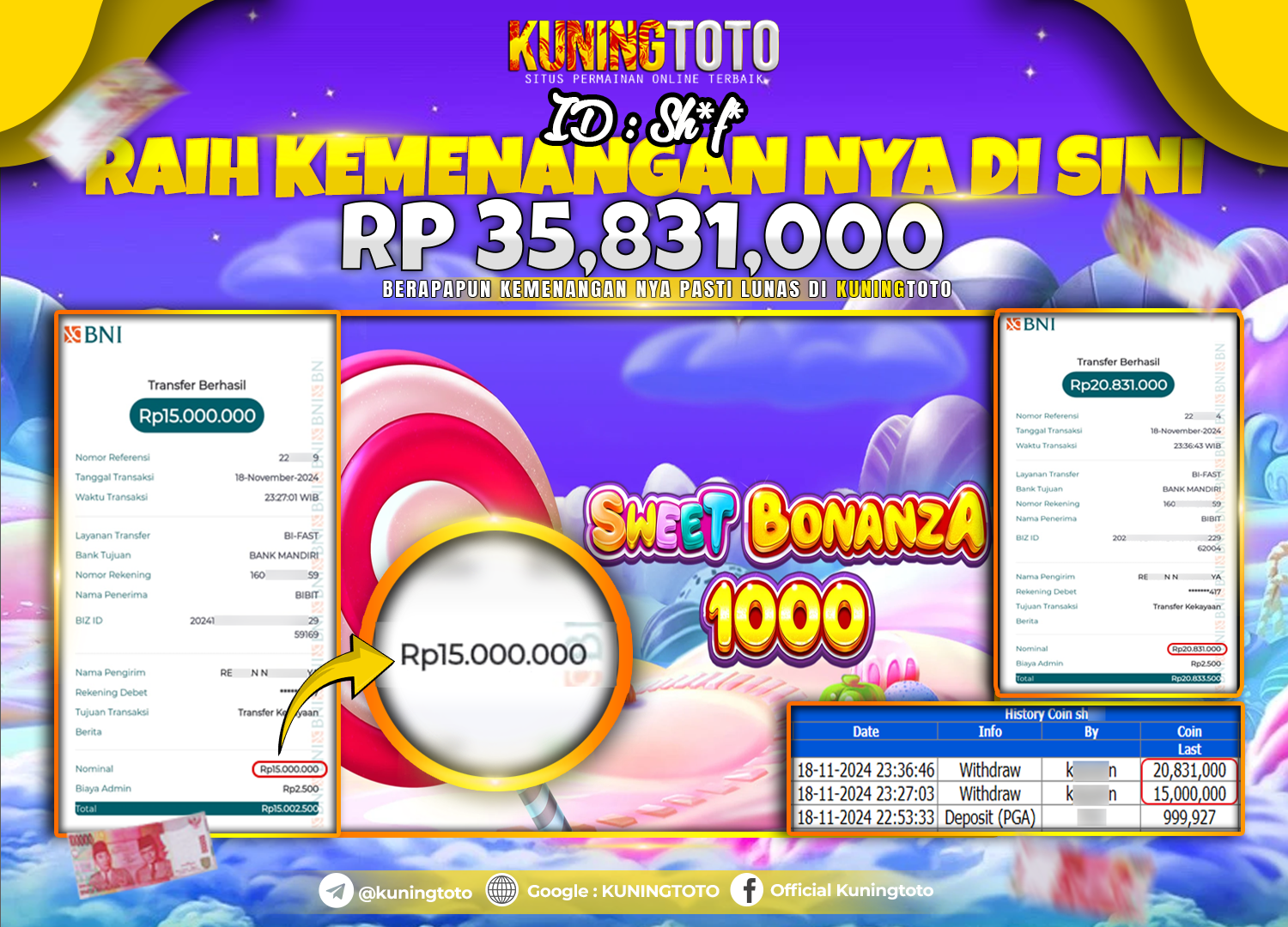 Bukti JackPot Slot Member KUNINGTOTO 18 Nov 2024 Sweet Bonanza 1000 Memenangkan Jackpot Permainan Slot online sangat populer di kalangan…