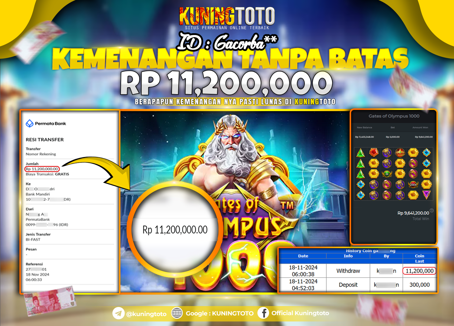 Bukti JackPot Slot Member KUNINGTOTO 14 November 2024 Gates Of Olympus 1000 Memenangkan Jackpot Permainan Slot online sangat populer di…