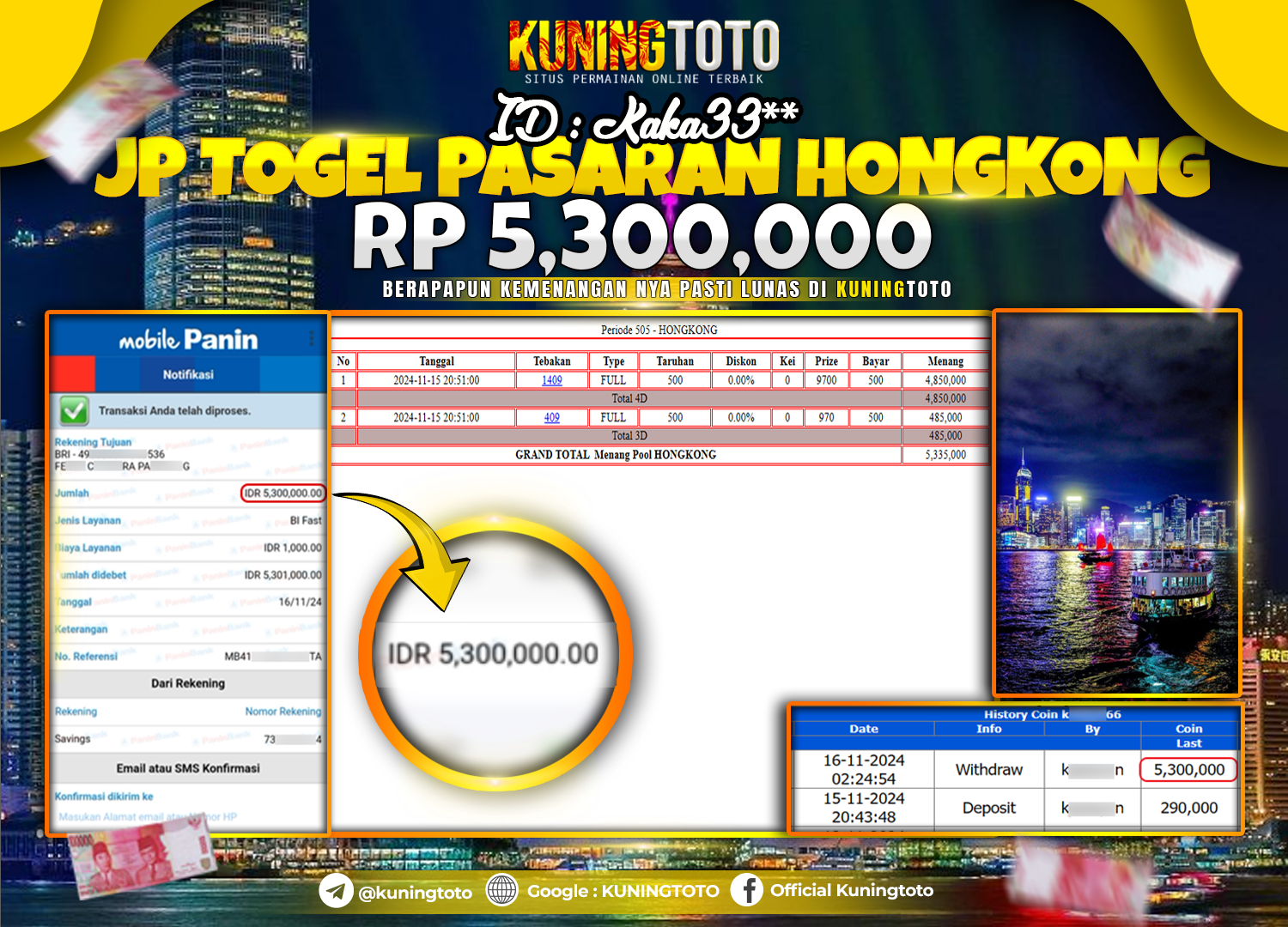 Bukti JackPot Togel Member KUNINGTOTO 16 November 2024 Togel Pasaran Hongkong Memenangkan Jackpot Permainan Slot online sangat populer di kalangan…