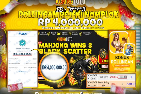 Bukti JackPot Slot Member KUNINGTOTO 02 December 2024 Bonus Rollingan Memenangkan Jackpot dalam permainan slot online, yang saat ini sangat…