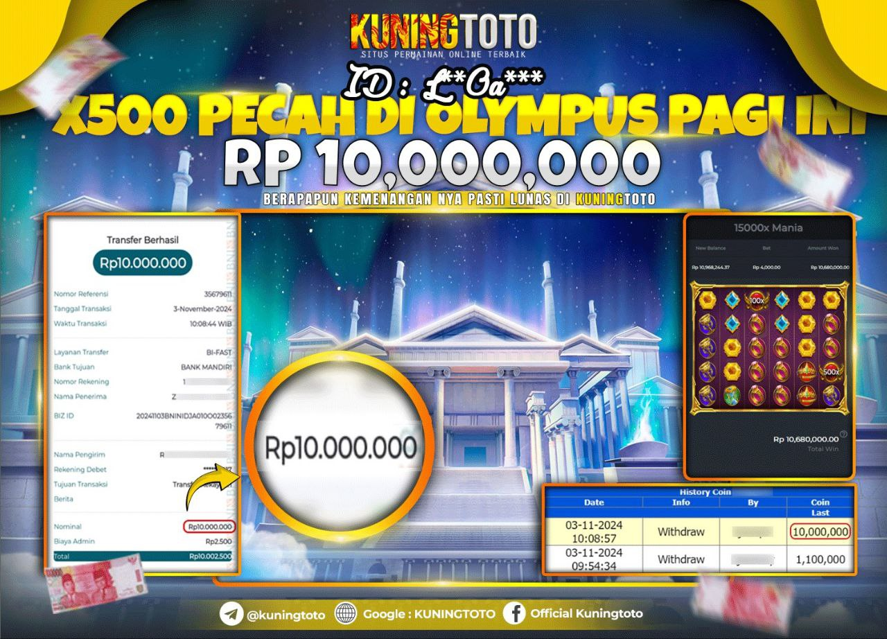 Bukti JackPot Slot Member KUNINGTOTO 04 November 2024 Gates Of Olympus 1000 Memenangkan Jackpot Permainan Slot online sangat populer di…