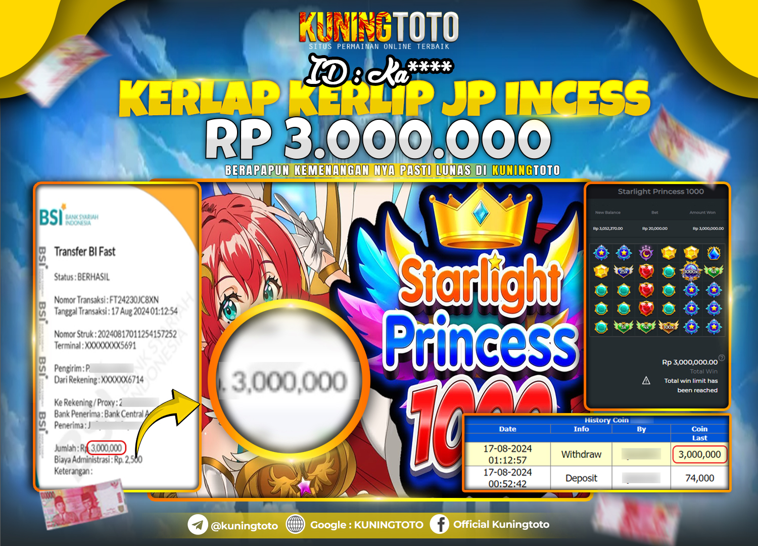Bukti JP Slot Member KUNING TOTO 17 August 2024 Starlight Princes 1000 Memenangkan Jackpot Permainan Slot online sangat populer di…