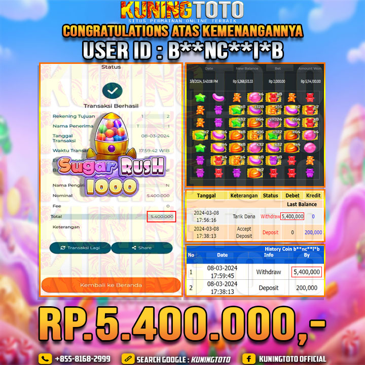 Bukti JP Slot Member KUNING TOTO 08 Maret 2024 Sugar Rush 1000 Memenangkan Jackpot Permainan Slot online sangat populer di…