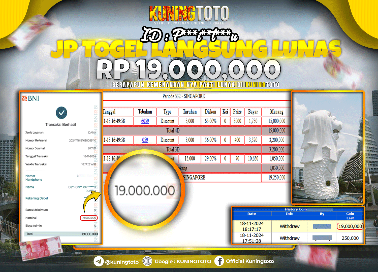 Bukti JackPot Togel Member KUNINGTOTO 18 November 2024 Togel Pasaran Singapore Memenangkan Jackpot Permainan Slot online sangat populer di kalangan…