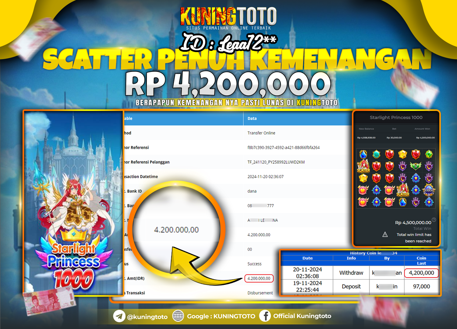 Bukti JackPot Slot Member KUNINGTOTO 20 November 2024 Starlight Princess 1000 Memenangkan Jackpot Permainan Slot online sangat populer di kalangan…